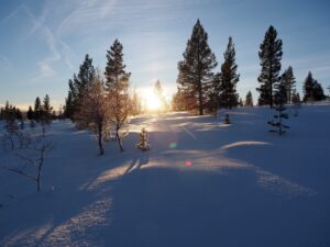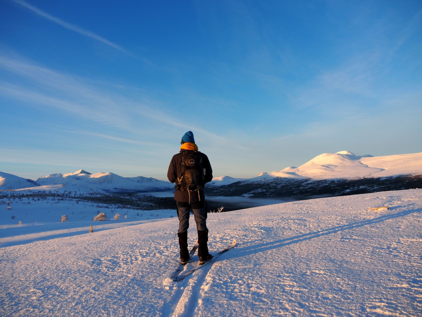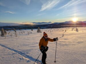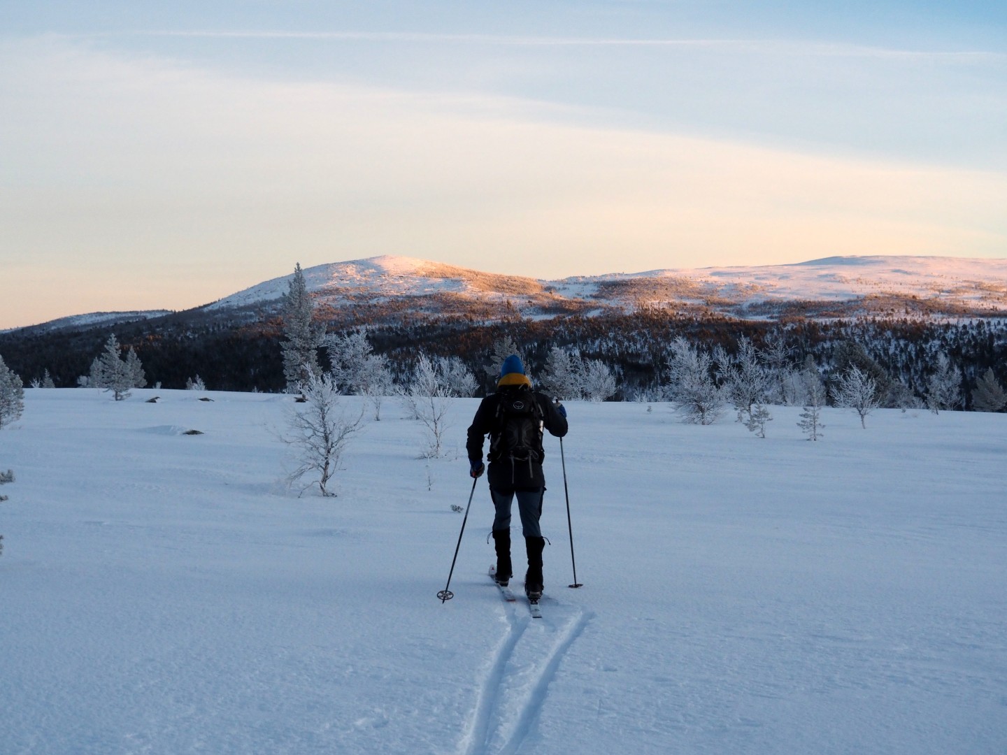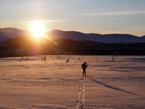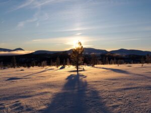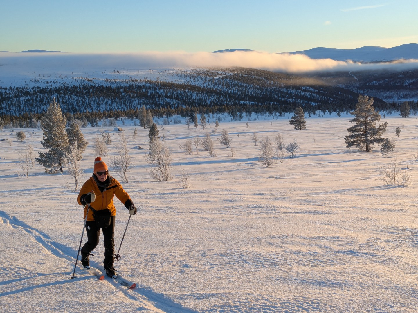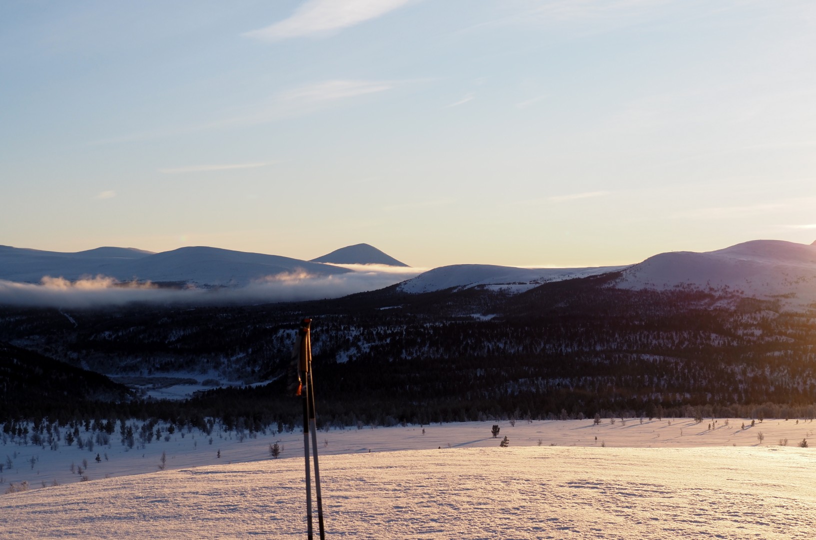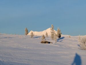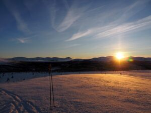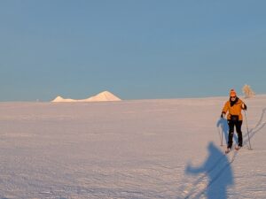 We wilden te ski naar Dørfallet op Venabygdsfjellet, maar draaiden om bij Spidsbergseter vanwege de mist. In plaats daarvan klommen we bij Rondetunet omhoog naar Søre Vola, voor een prachtige skitocht in de zon!