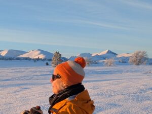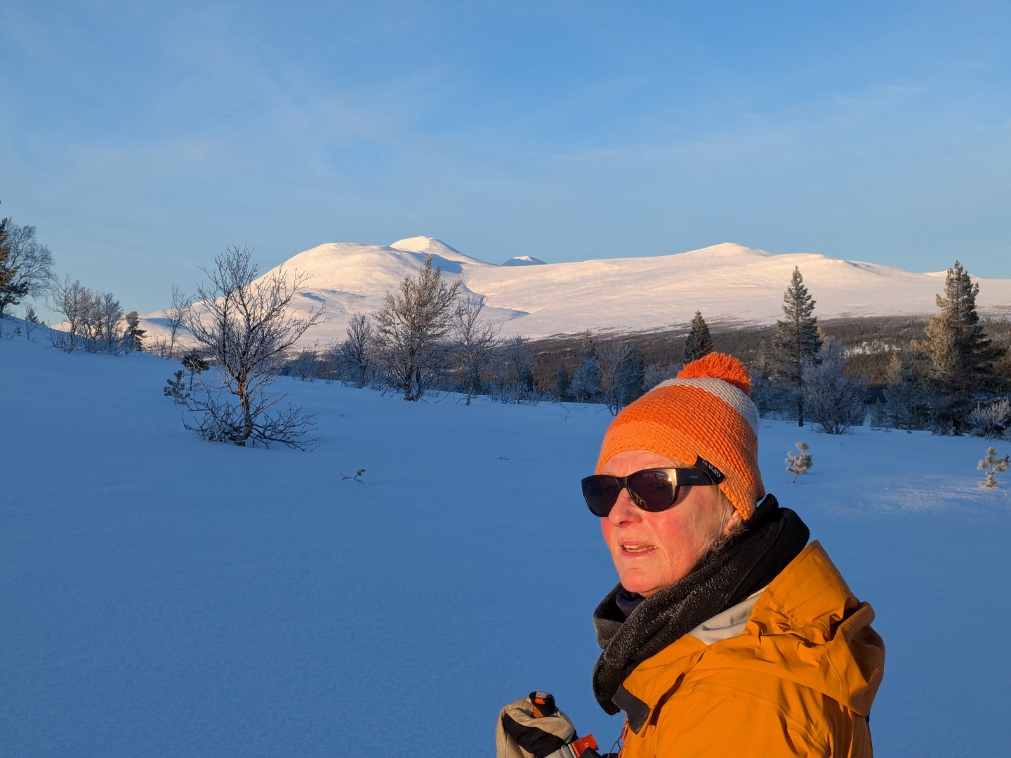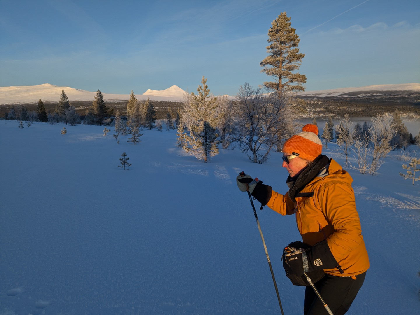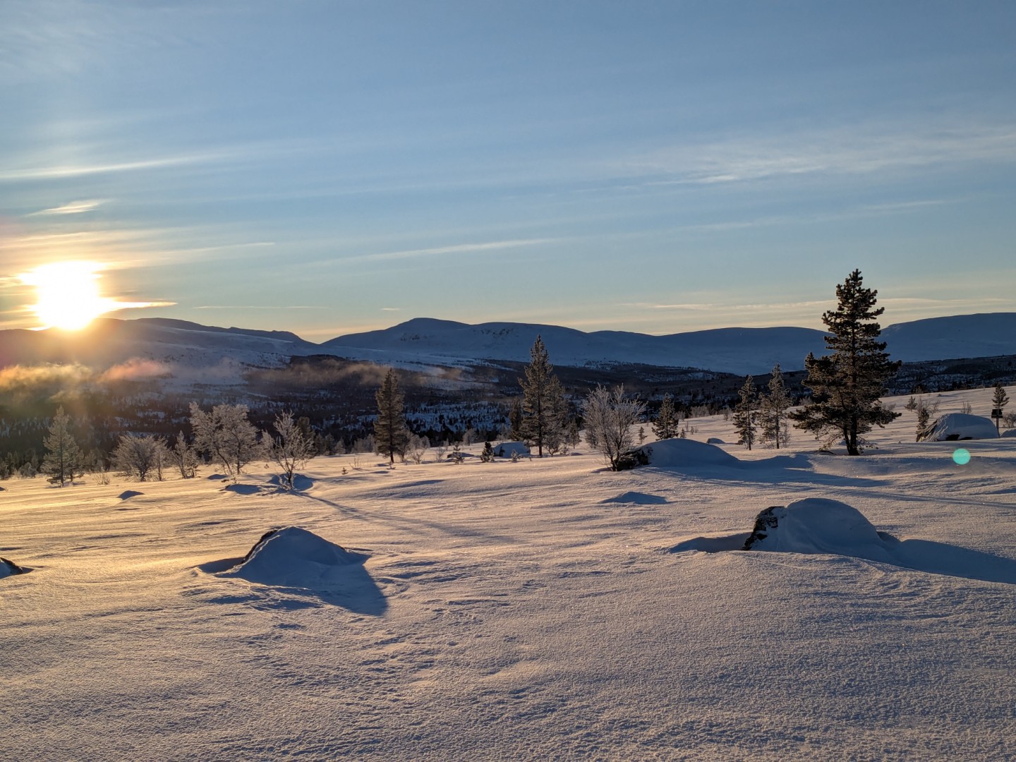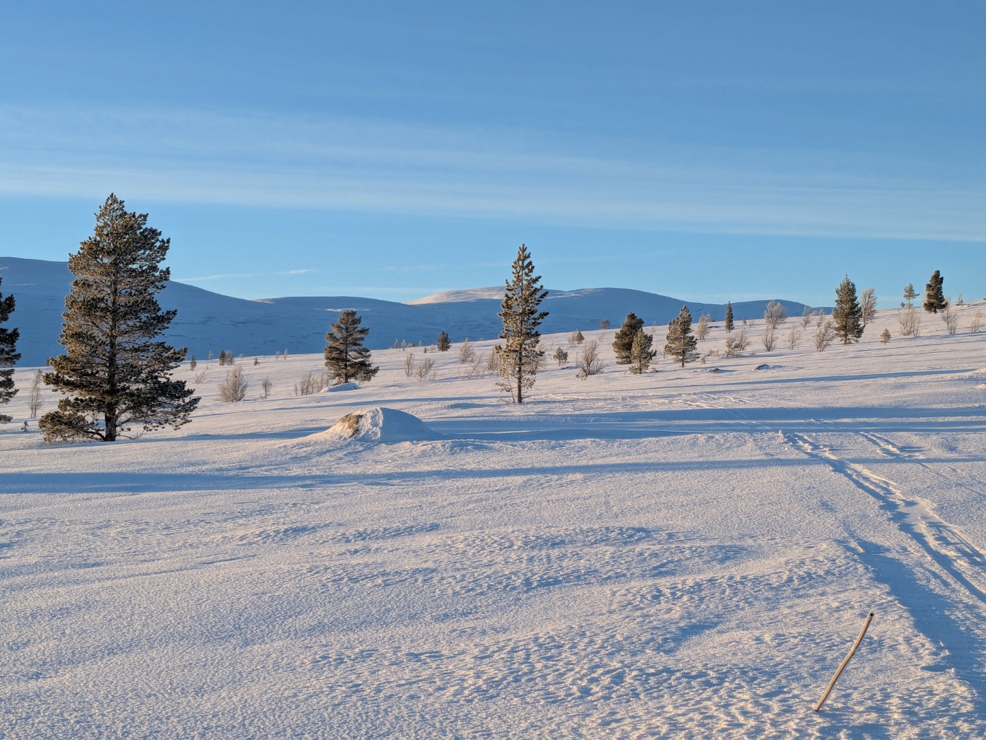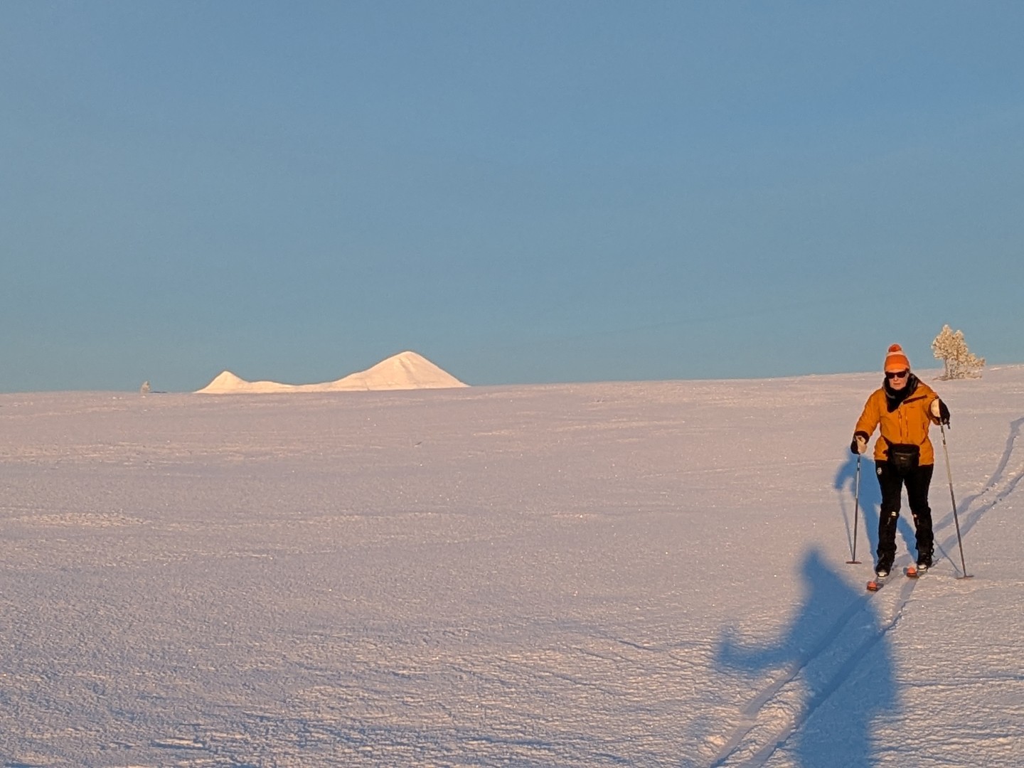 Vi skulle på ski til Dørfallet på Venabygdsfjellet, men vi snudde ved Spidsbergseter pga. tåket. Istedenfor gikk vi på ski fra Rondetunet til Søre Vola. I sola!