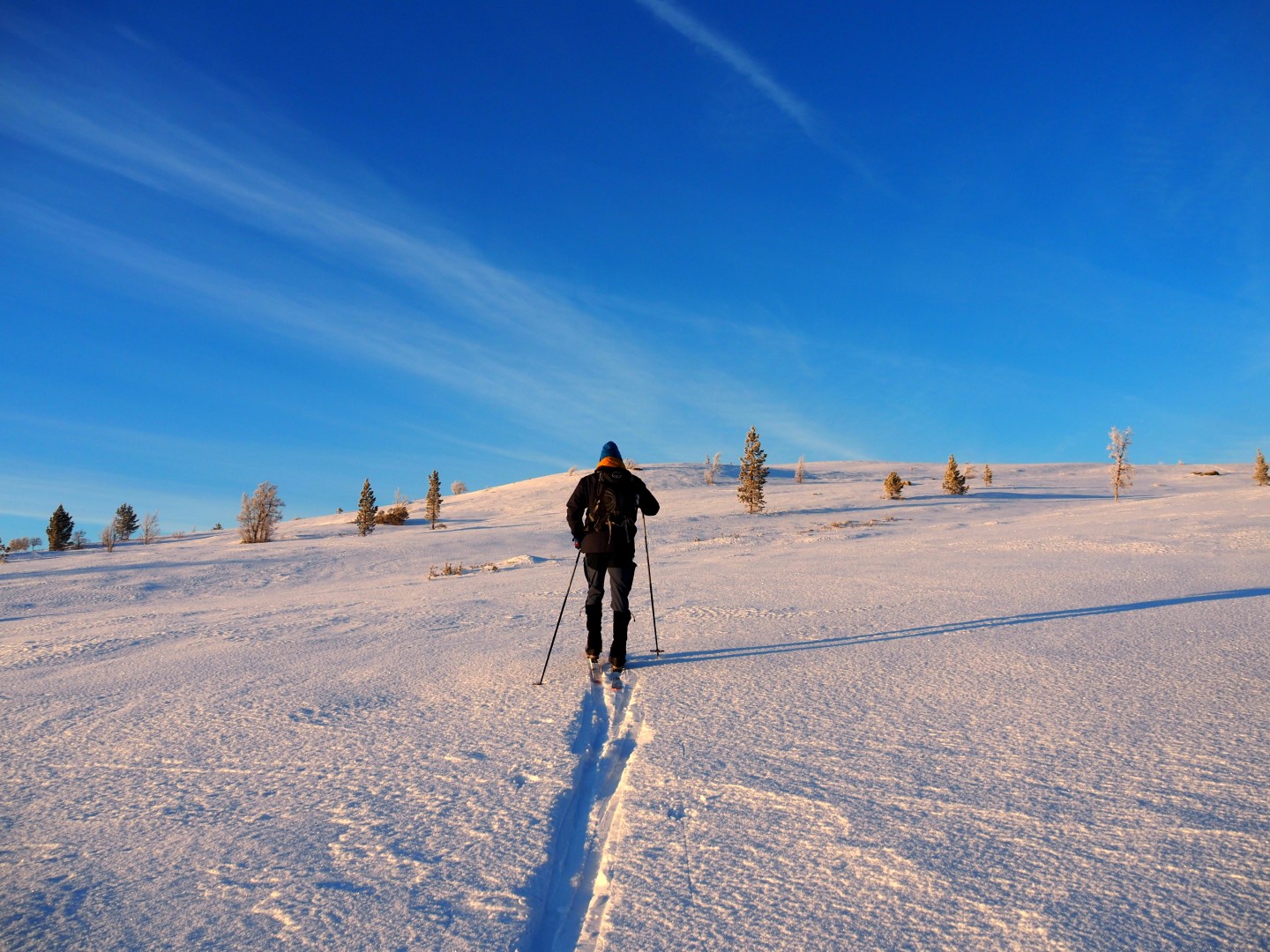 Vi lager vårt eget spor til Søre Vola. We trekken ons eigen spoor naar Søre Vola