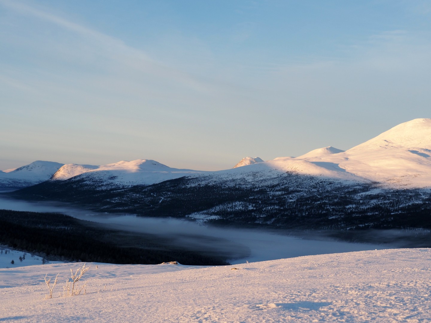 Tåken ligger på Atnsjøen. De mist ligt over Atnsjøen