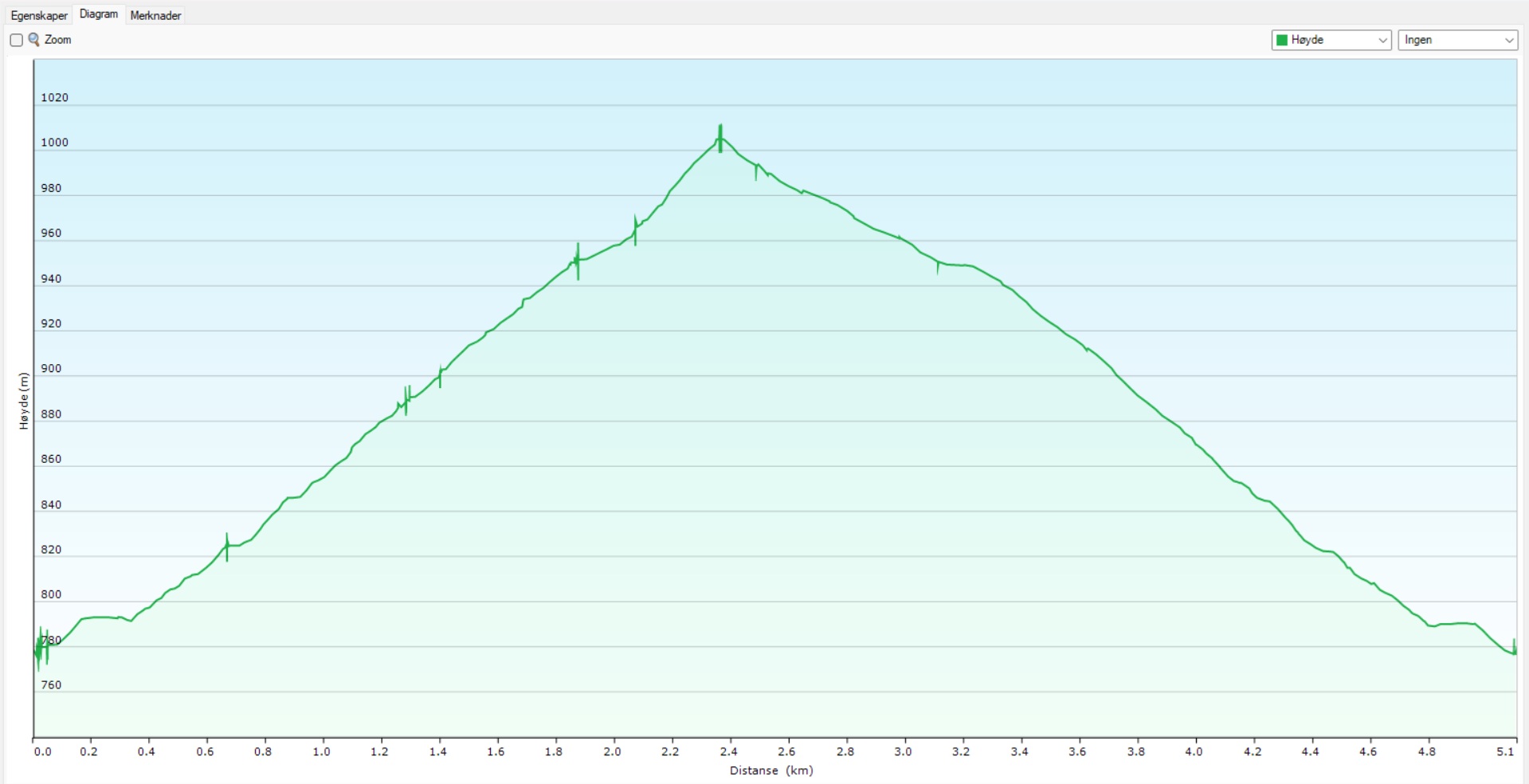 Diagram: 5,2 km, stigning 259m. Diagram: 5,2 km, stijging 259m