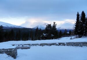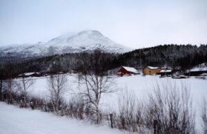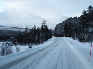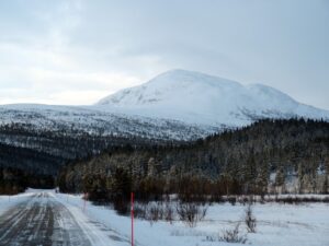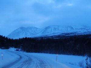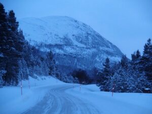Etter skituren kjører vi tilbake fra Grimsdalsveien til Enden over Fv27. Na de skitocht rijden we terug van Grimsdalsveien over weg 27 naar Enden