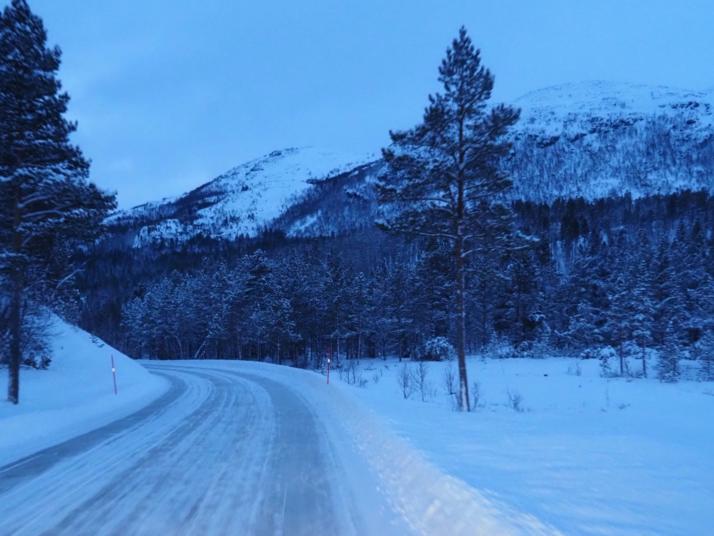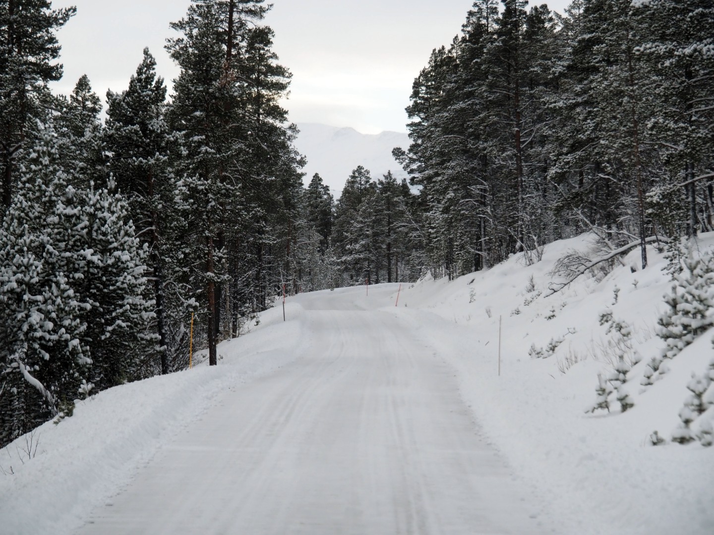 Etter skituren kjører vi tilbake fra Grimsdalsveien til Enden over Fv27. Na de skitocht rijden we terug van Grimsdalsveien over weg 27 naar Enden