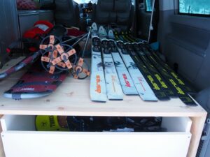 Skal vi på fjellski eller i løype? Vi tar begge med, mens et par venter hjemme. Gaan we op de bergskies of de løypeskies? We nemen deze beide mee, terwijl een paar thuis mag blijven