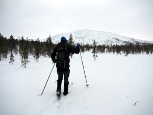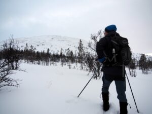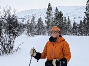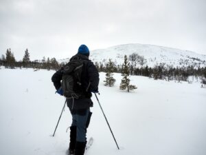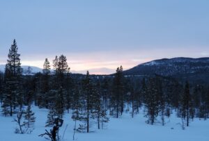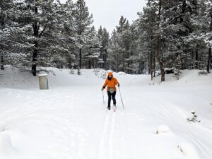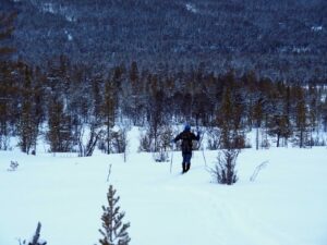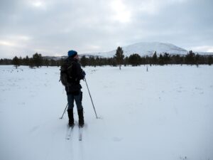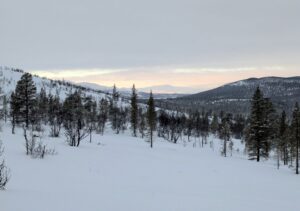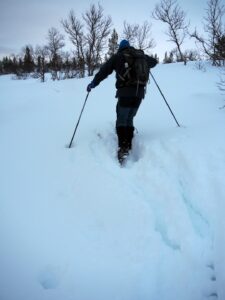 Gaan we naar Friisvegen of naar Gråsjøen? Op Friisvegen woei het 2x zo hard als op Grimsdalsveien. Sneeuw, minusgraden en wind zijn een slechte combi. Dus we reden nog een keer naar Grimsdalsveien.