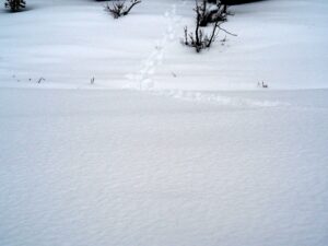Vi krysser bare to ganger et spor: 1 av en elg, 1 ev et hjort. We kruisen maar twee keer een spoor: 1 van een Eland en 1 van een Hert