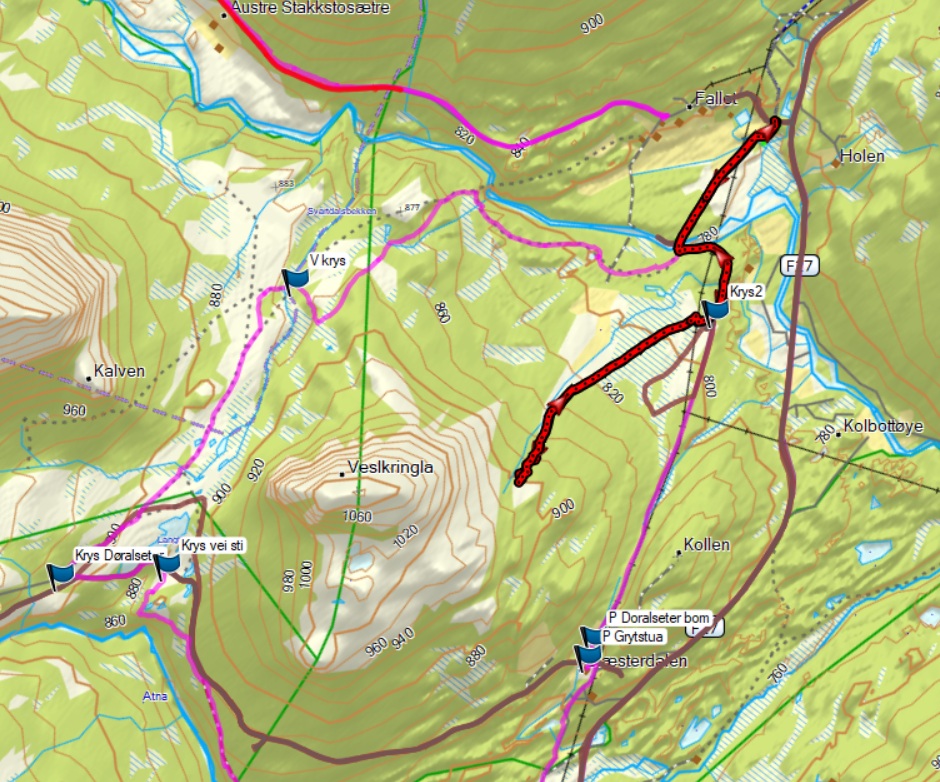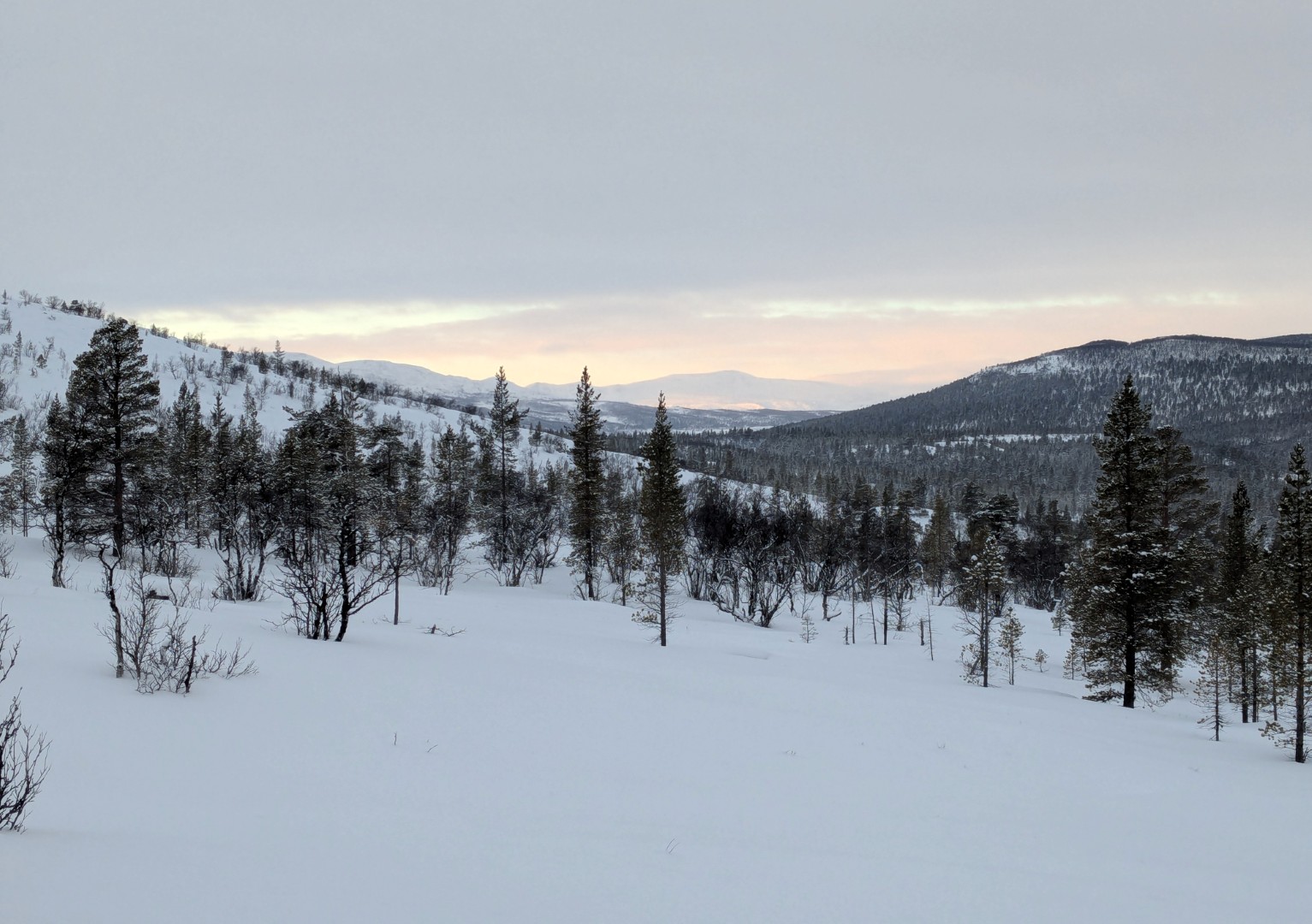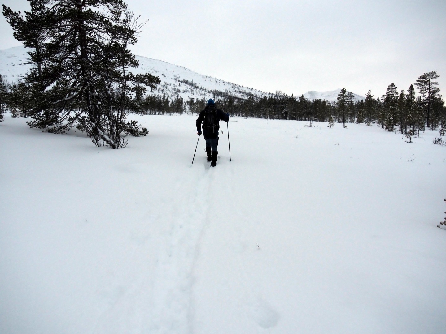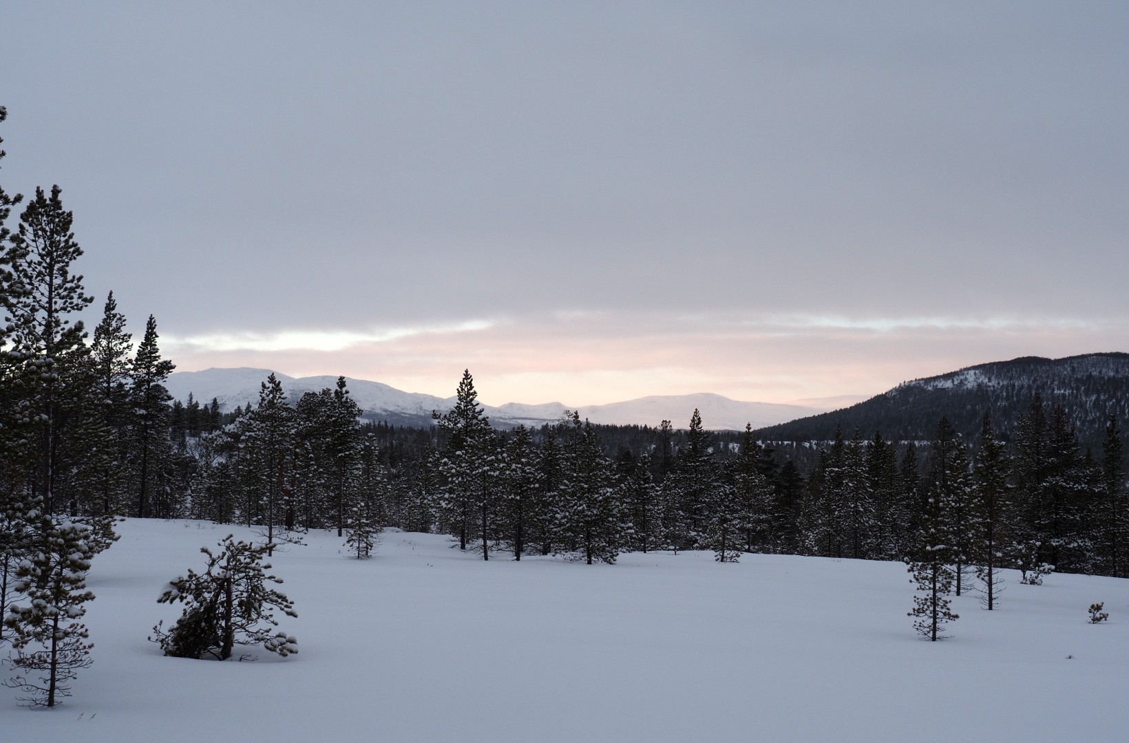 Gaan we naar Friisvegen of naar Gråsjøen? Op Friisvegen woei het 2x zo hard als op Grimsdalsveien. Sneeuw, minusgraden en wind zijn een slechte combi. Dus we reden nog een keer naar Grimsdalsveien.