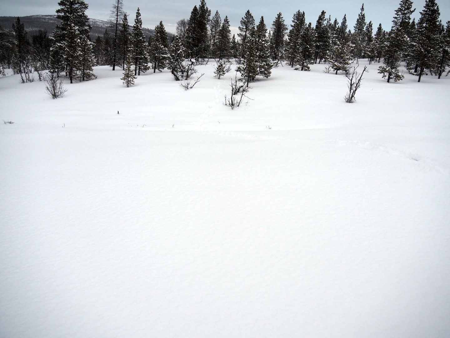 Vi krysser bare to ganger et spor: 1 av en elg, 1 ev et hjort. We kruisen maar twee keer een spoor: 1 van een Eland en 1 van een Hert