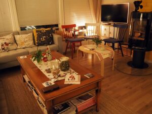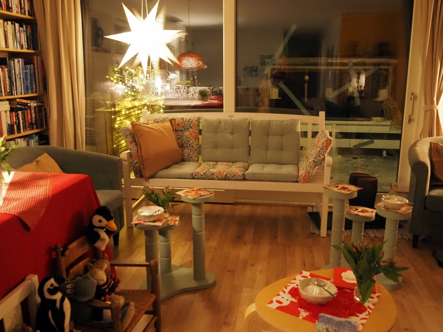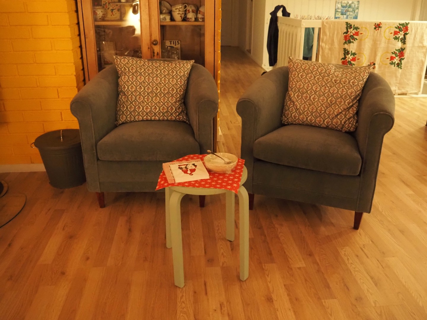 Lørdagsmiddag er alle naboer invitert til ”oliebollenfest” med Champagne og alkoholfri til nabobarna. Selvfølgelig noe søtt etterpå! Fullt hus!
