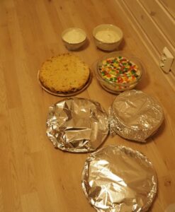 Zatermiddag komen alle buren naar het ”oliebollenfeest” met Champagne en alkoholvrij sap voor de kinderen. En natuurlijk zoete baksels er na. Volle bak!
