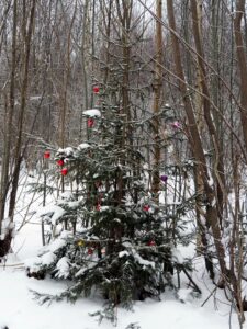 Nei men, midt i skogen et pyntet juletre? Hahaha, Noorse humor, midden in het bos een versierde kerstboom