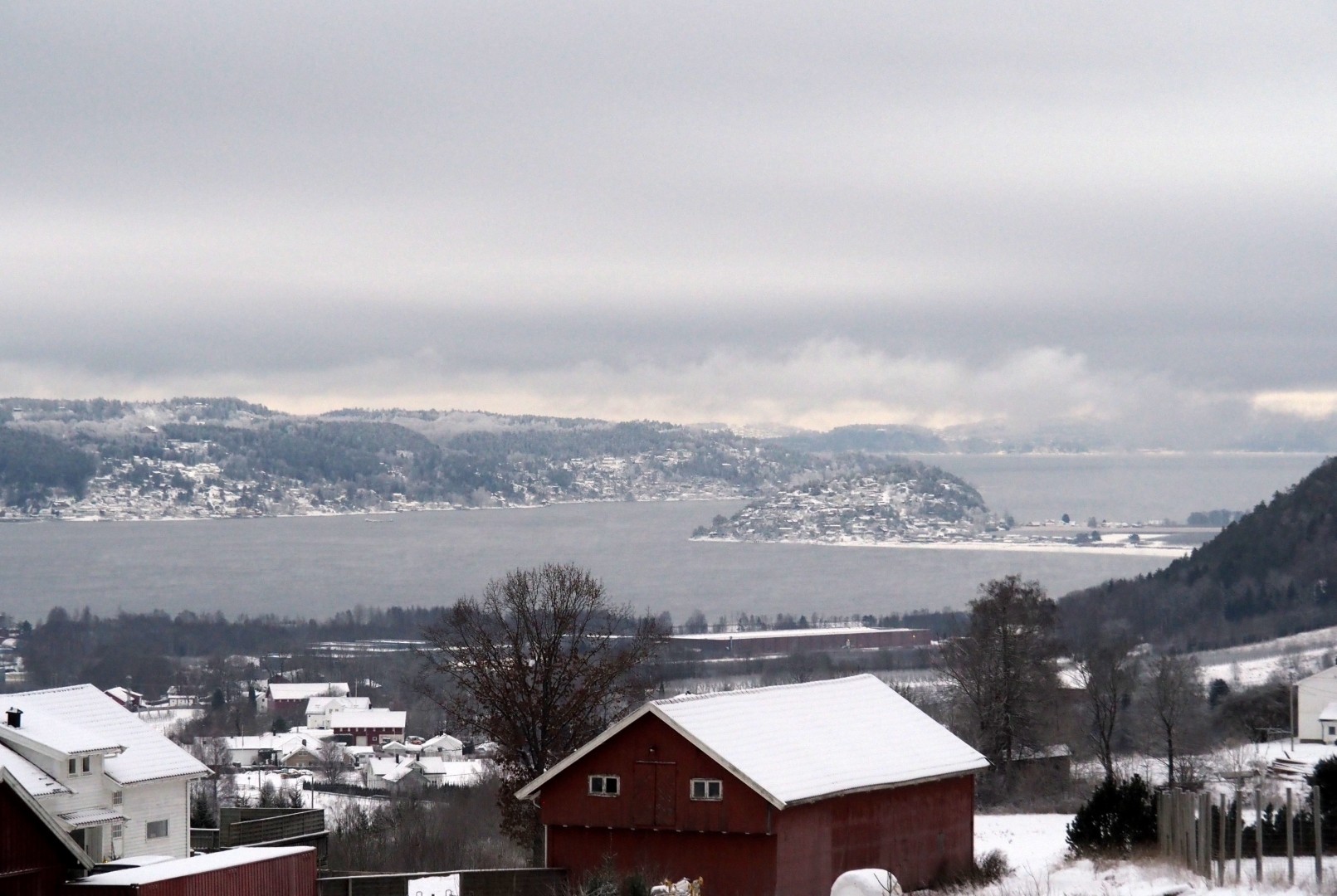 Det er veldig fint ute! Hvit av frost og en frosset Drammensfjord. Het is prachtig buiten. Wit van de rijp met een bevroren Drammensfjord