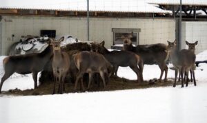 Hjort, hester og juletre i skogen / Herten, paarden en kerstboom in het bos — No Comments