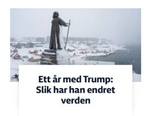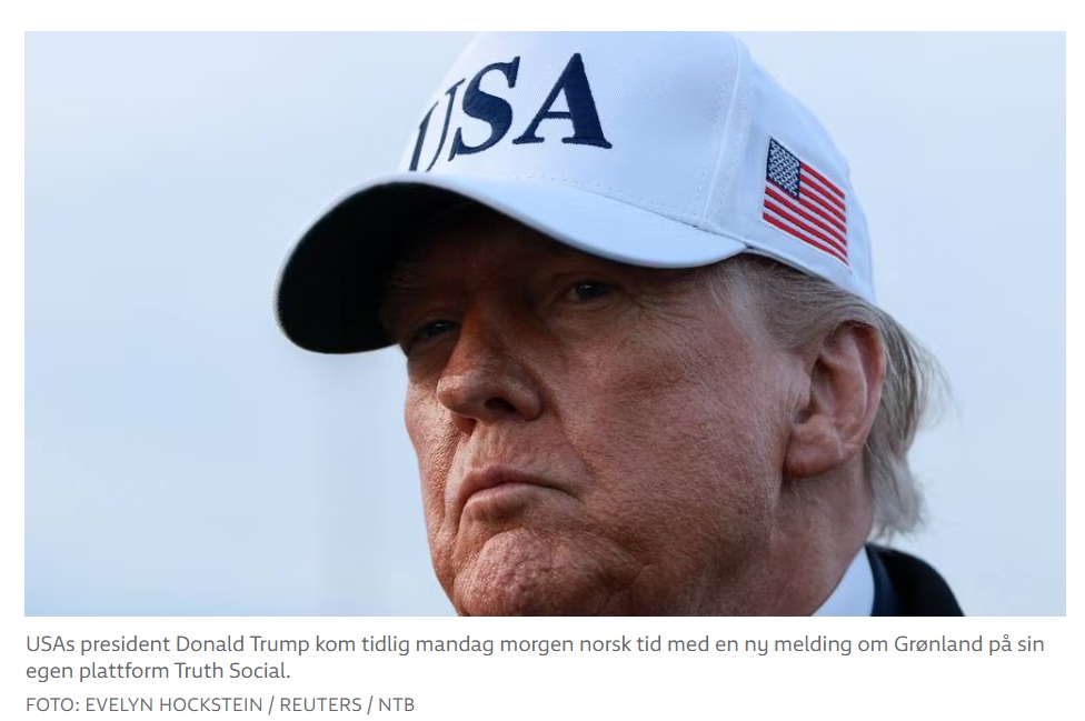 Trump til Støre: – Jeg tenker ikke lenger bare på fred. Trumps bericht aan Støre (minister-president): Ik denk niet langer alleen maar aan vrede. LINK = https://www.nrk.no/urix/trump-med-ny-gronland-melding_-_-na-er-tiden-inne