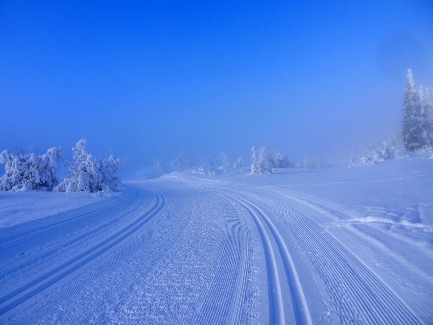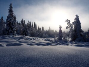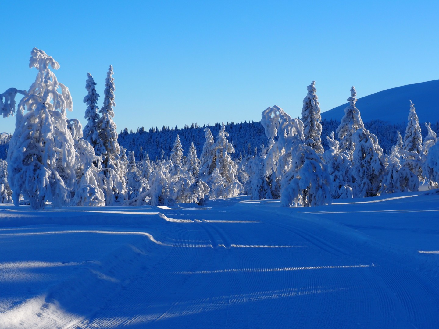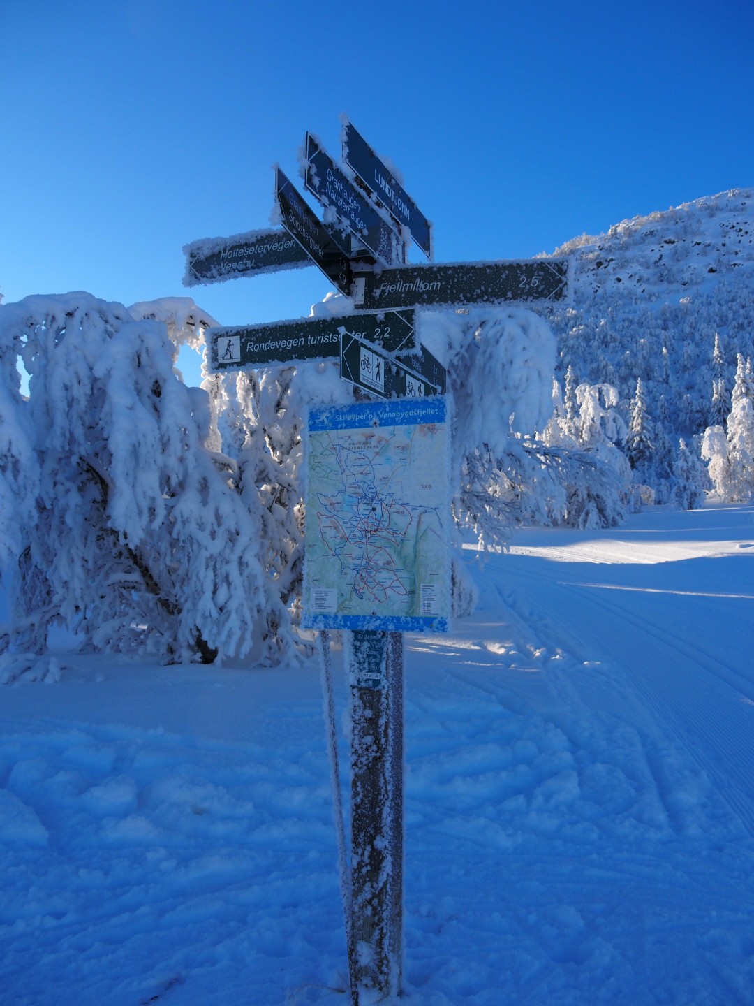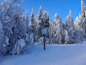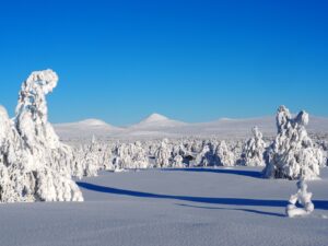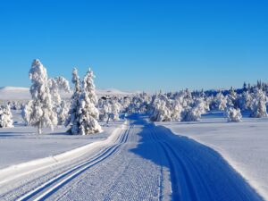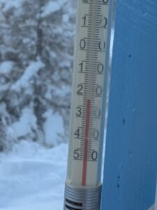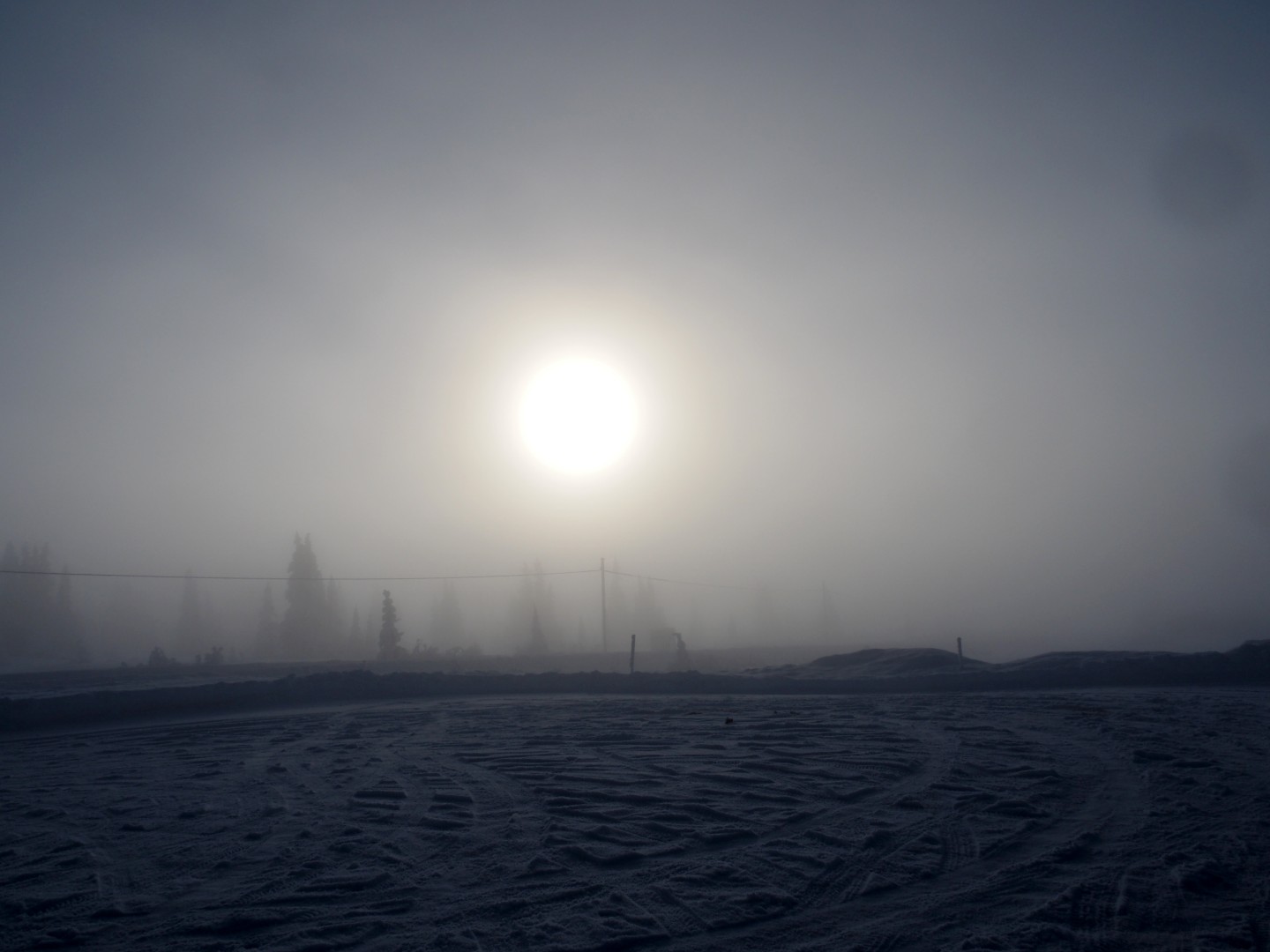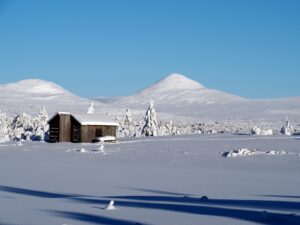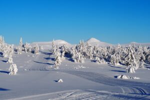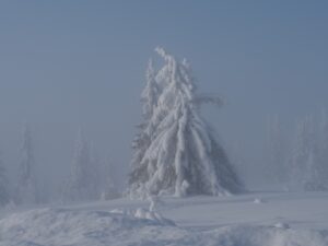 Dinsdag de 27ste januari is het -23ºC. Na een klus met ijspegels rijd ik naar Trabelifjellet om te langlaufen. De zon schijnt, maar niet bij Trabelfjellet! Dan is het nog kouder!….