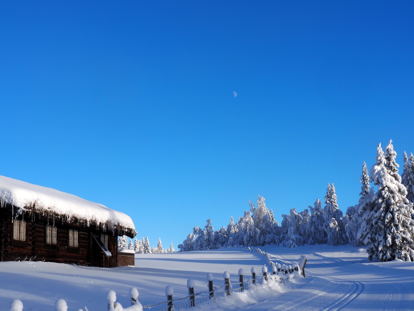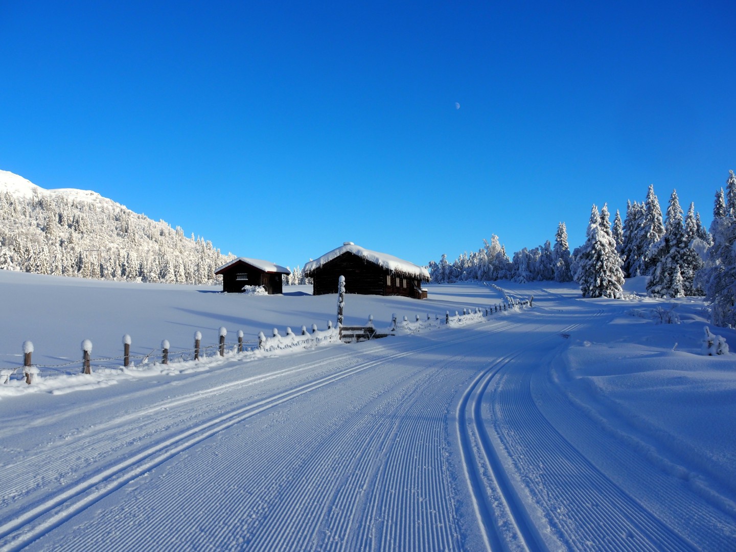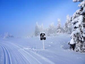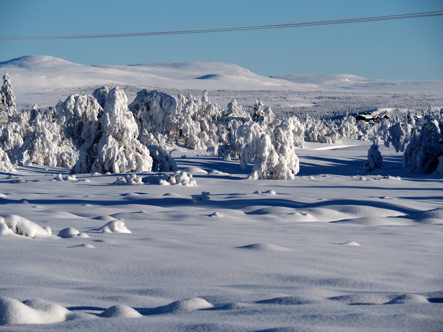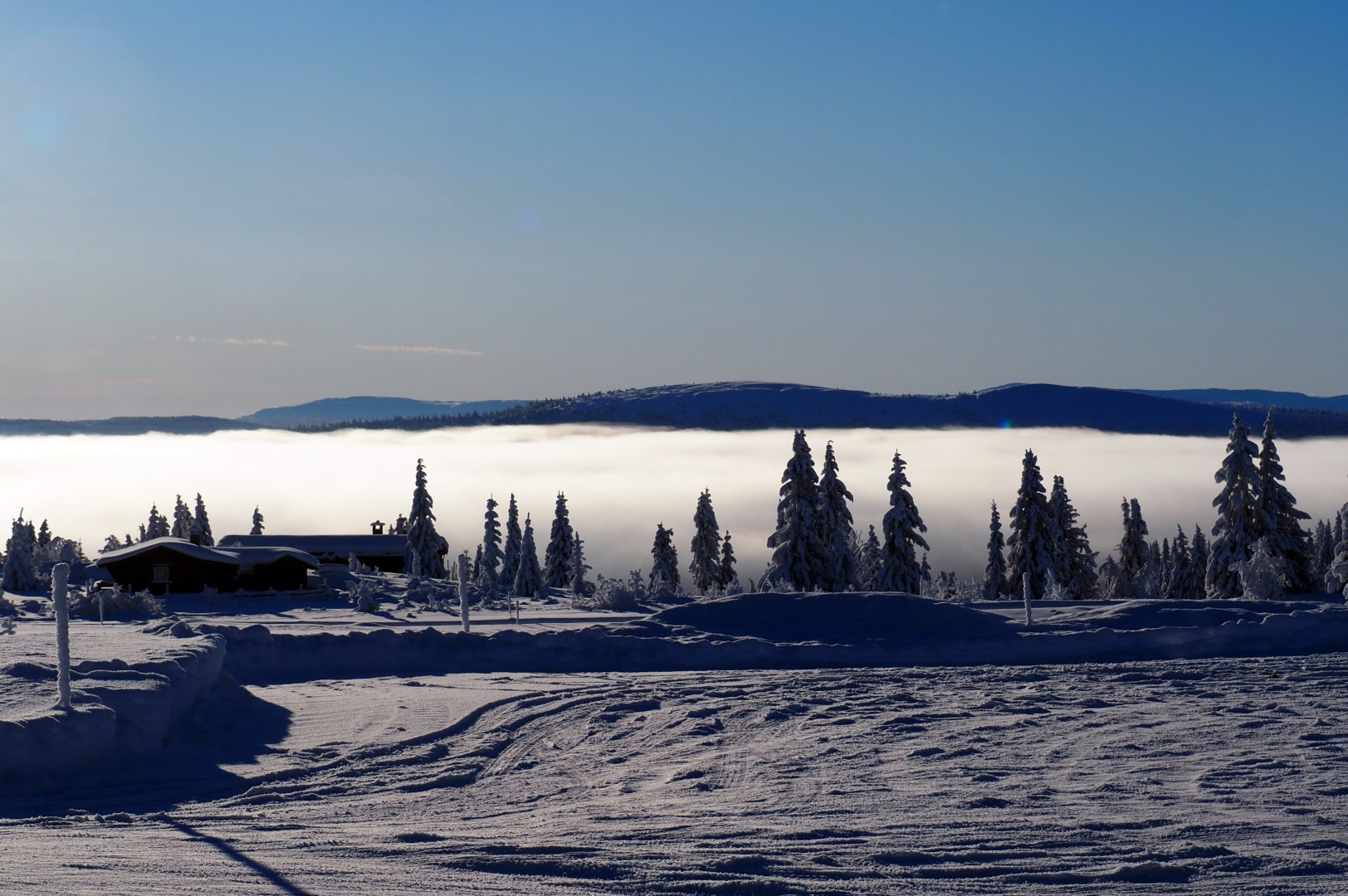 Dinsdag de 27ste januari is het -23ºC. Na een klus met ijspegels rijd ik naar Trabelifjellet om te langlaufen. De zon schijnt, maar niet bij Trabelfjellet! Dan is het nog kouder!….
