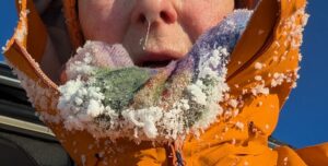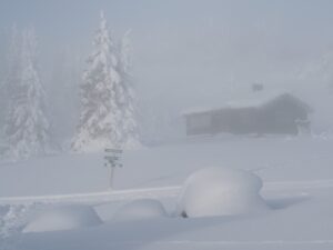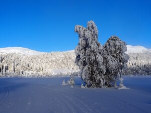Tirsdag den 27. januar er det -23ºC. Etter en jobb med istapper kjører jeg til Trabelifjellet for å gå på ski. Sola skinner, men ikke på Trabelifjellet! Enda kaldere…
