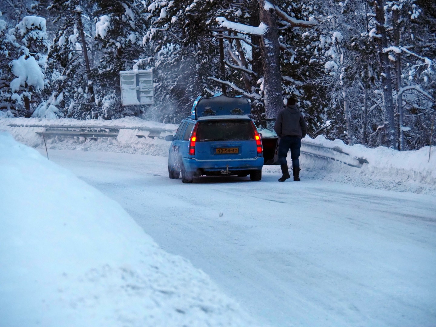 Voor Noren is dit een onbegrijpelijk spectakel. Het komt zelden voor, dat een auto met een Noors nummerbord niet omhoog komt richting Venabygdsfjellet. Na ons huis is de helling 12%, maar met de juiste winterbanden of spijkerbanden en bij voorkeur 4-wiel-aandrijving, is het geen probleem. Wij rijden dit dagelijks en zien nu de ene auto na de andere ‘sneuvelen’.