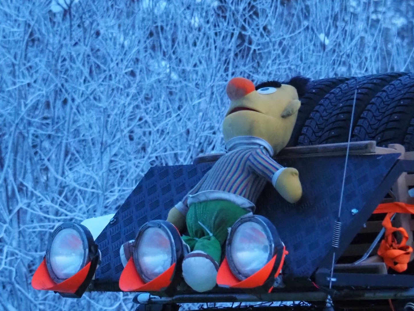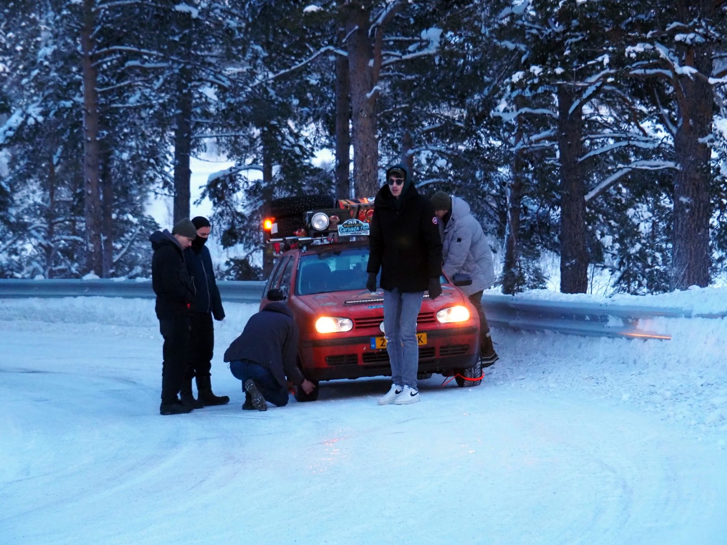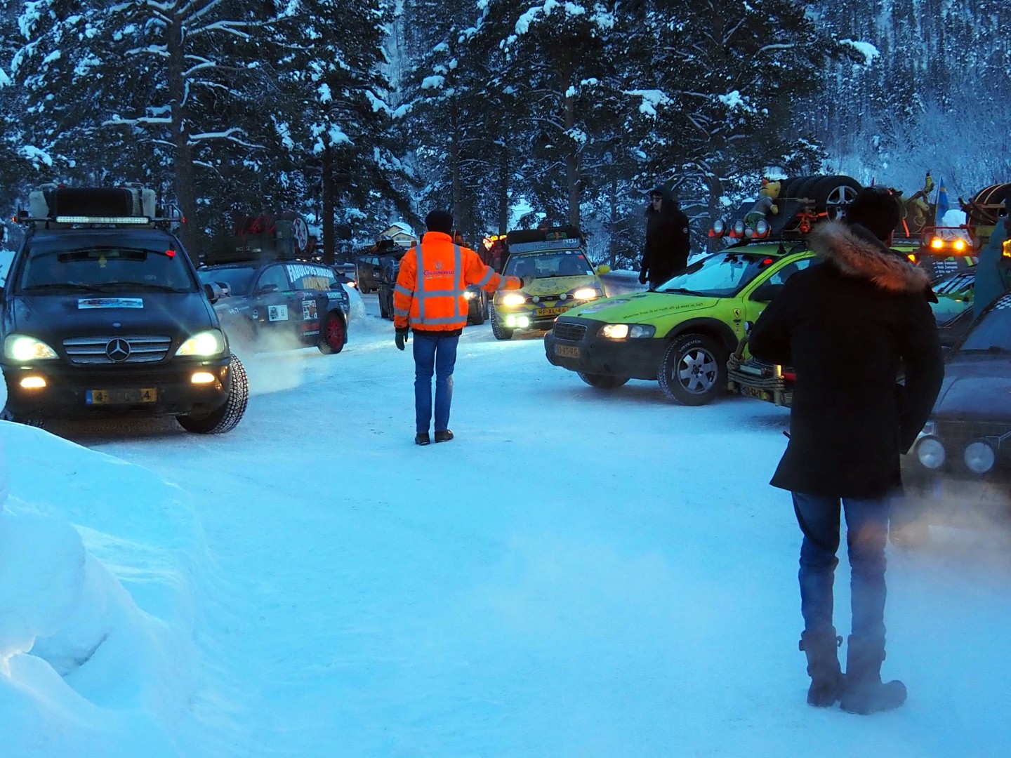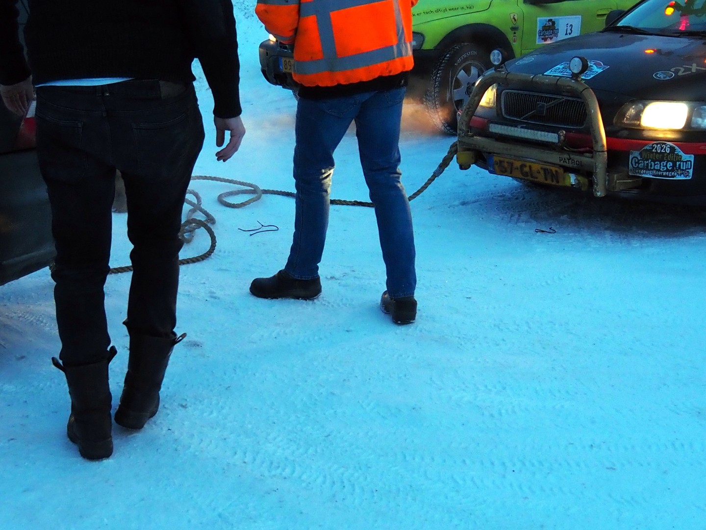 Dat weg 27 verstopt zit een paar uur is niet ongevaarlijk, maar ik geniet van de chemie onder de deelnemers. Allemaal ‘halve zolen’, heerlijk! In een t-shirt met korte mouwen en korte broek, jaaaaaaaaaaaaaaaa, ook die doen mee in -27,5º. Die spelen met hun leven!