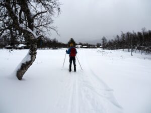 Zaterdag de 31ste januari gaan we te ski van Øverdalssætre p-plaats, naar Øverdalssætre, benedenlangs naar Solvang, bovenlangs naar Pika en terug naar Øverdalssætra. We zijn nooit eerder te ski ”benedenlangs naar Solvang” gegaan langs Prestegarden. Dat is fantatisch!