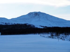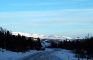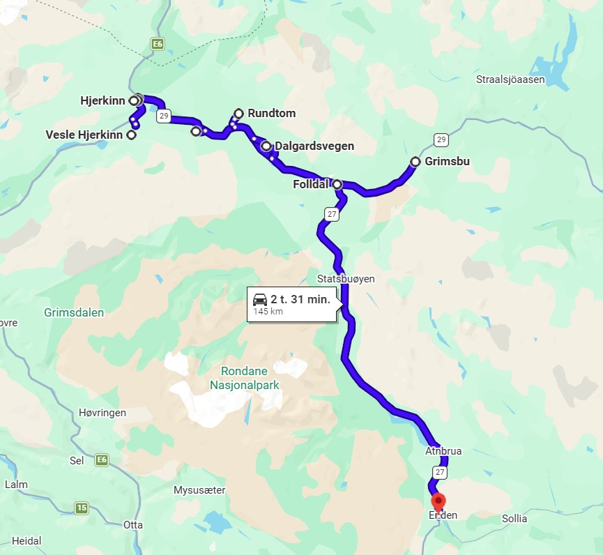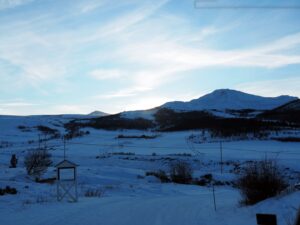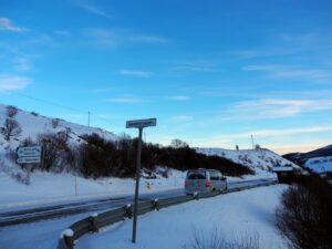 Slåsætervegen er bare delvis brøytet. Vi snur og kjører tilbake til Fv29. Slåtervegen is slechts gedeeltelijk gebrøyt. We draaien om en rijden verder over weg 29
