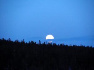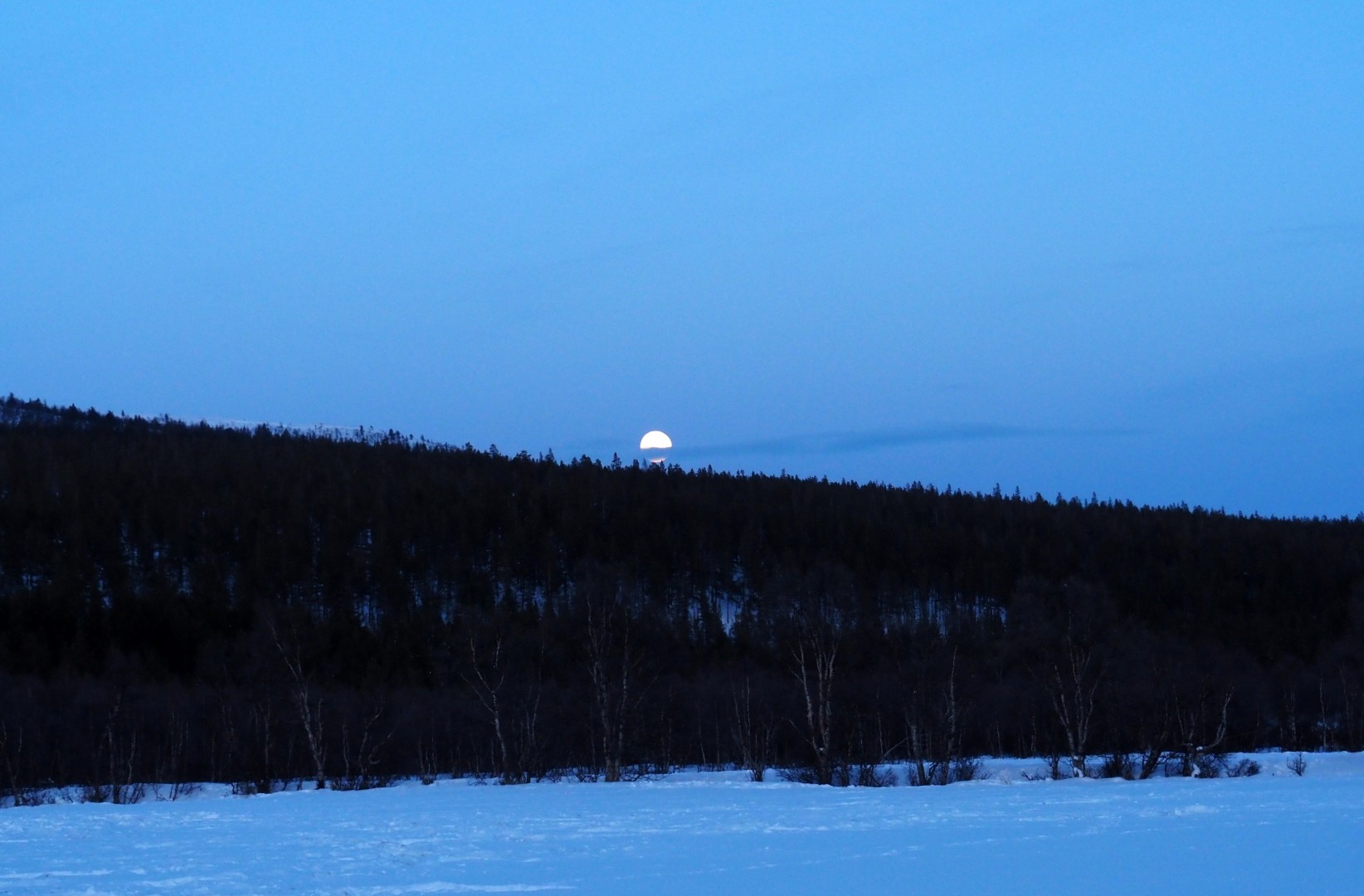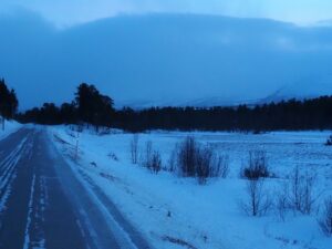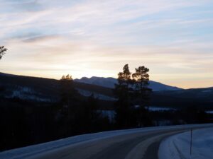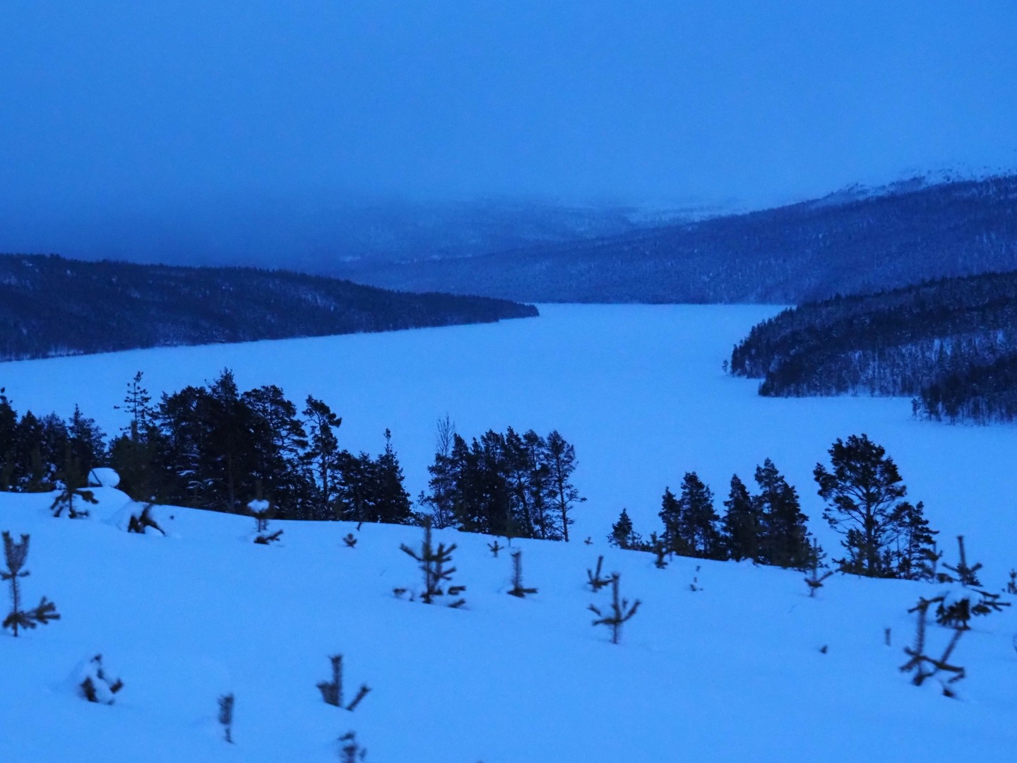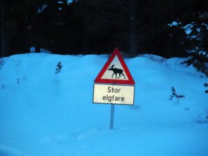 Stor elgfare, men til tross for at vi har sett spor hele dagen, dukker det ikke opp noen elg i skumringen! Groot elandengevaar! Maar ondanks dat het nu schemert en wij de hele dag sporen hebben gezien, duikt er geen eland op!