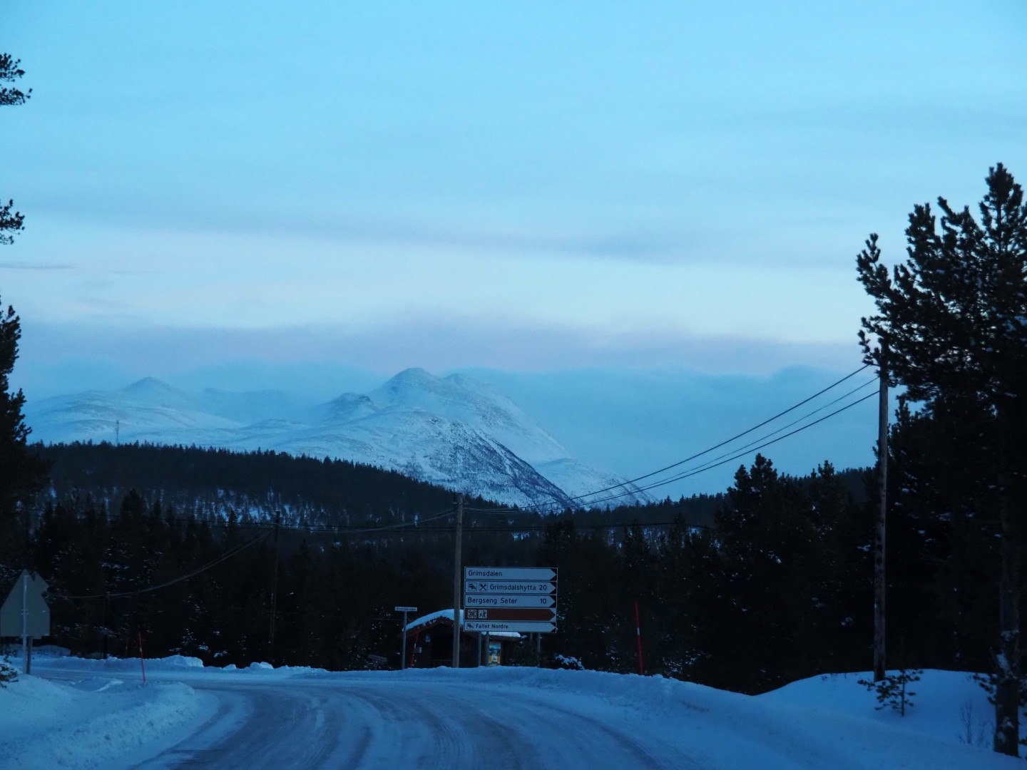 Kryss Grimsdalsvegen, som skiller Dovre fra Rondane. Kruising Grimsdalsveien, de weg die Dovre en Rondane scheidt