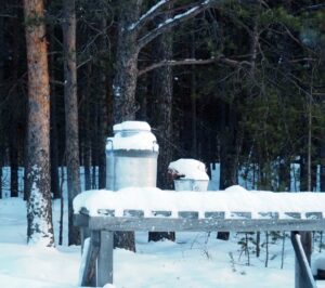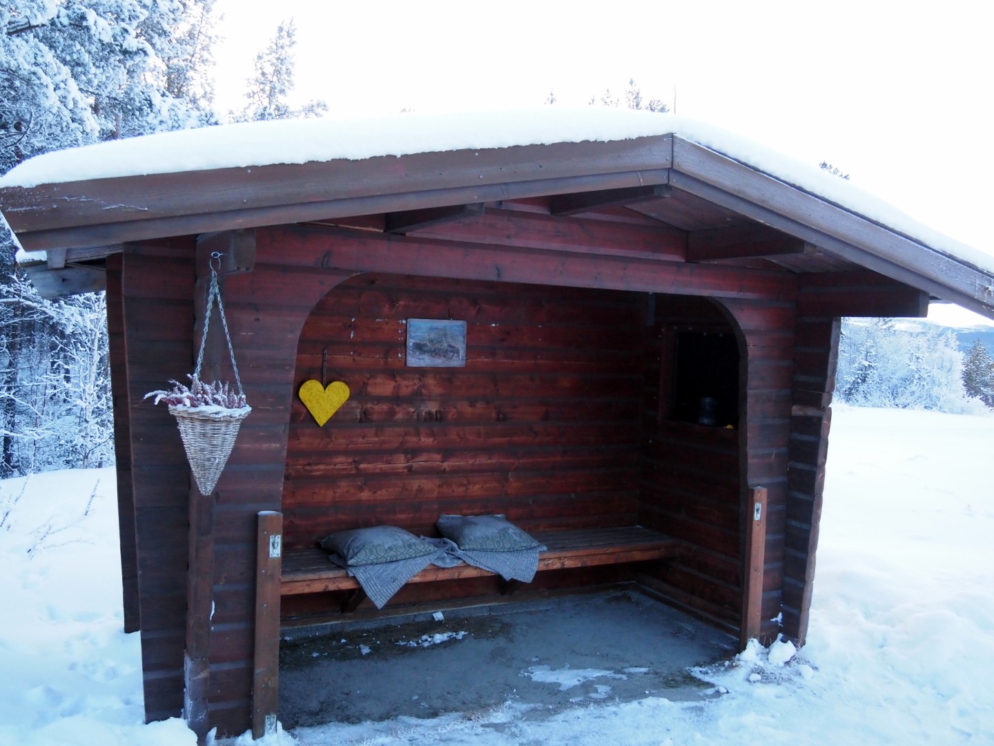 Det er bare en fest her å vente på bussen! Je zult toch op de bus moeten wachten in zo’n knus bushokje!
