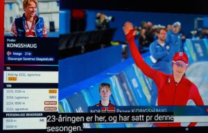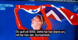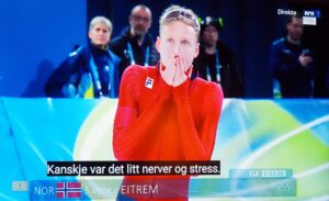 Etter at Sander Eitrem har vunnet gull med 5000m på skøyter, gratulerer den nederlandske dronningen Maxima kong Harald! Jeg har sendt søstera mi i Nederland enda mer lommetørkle! 😉