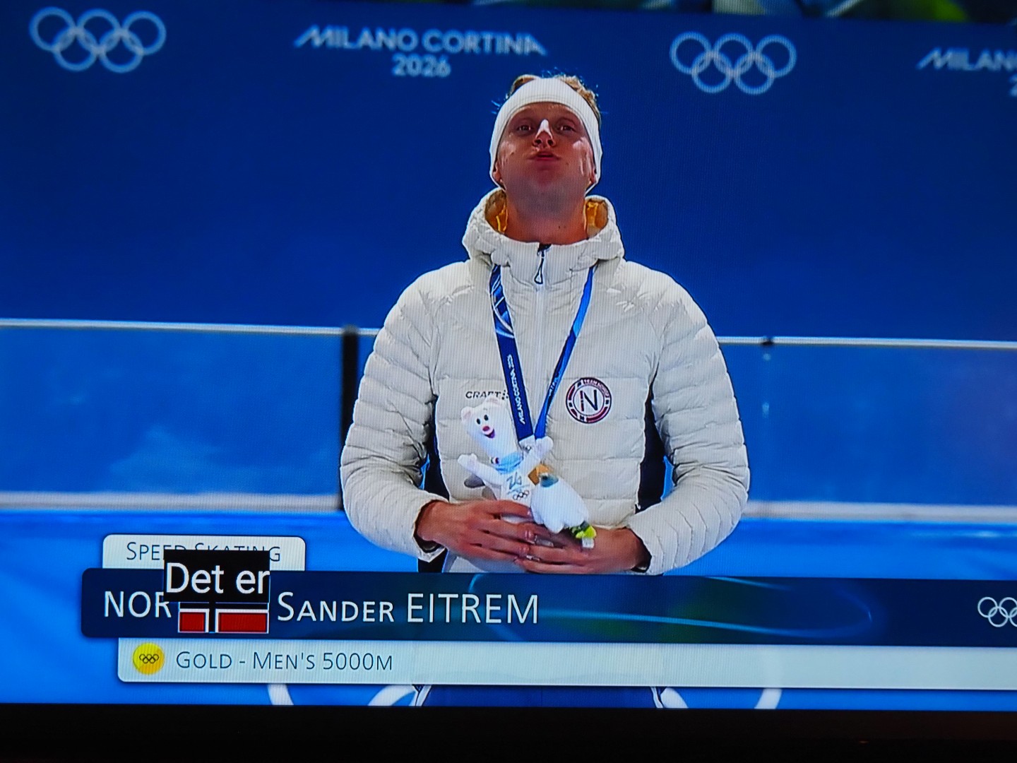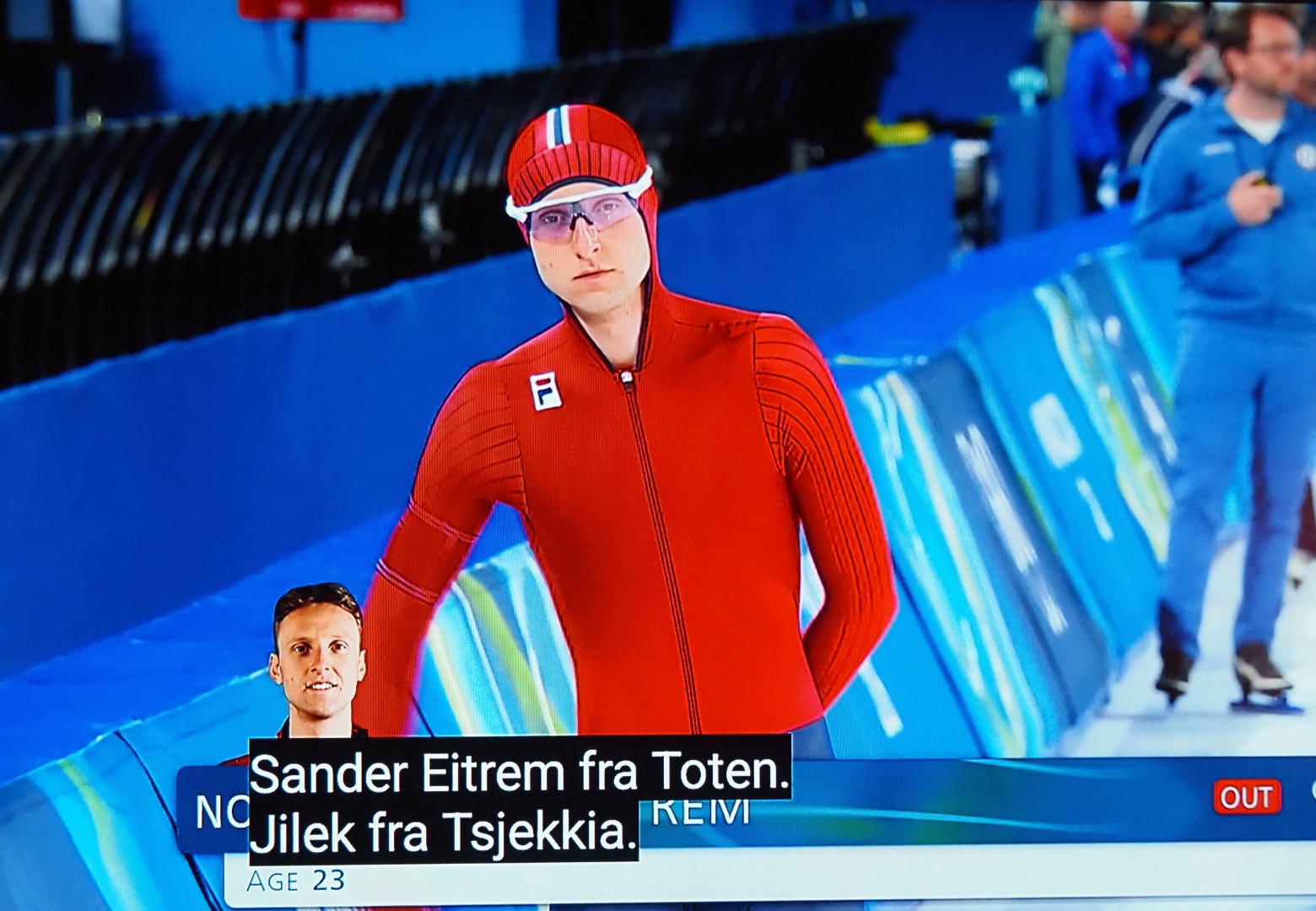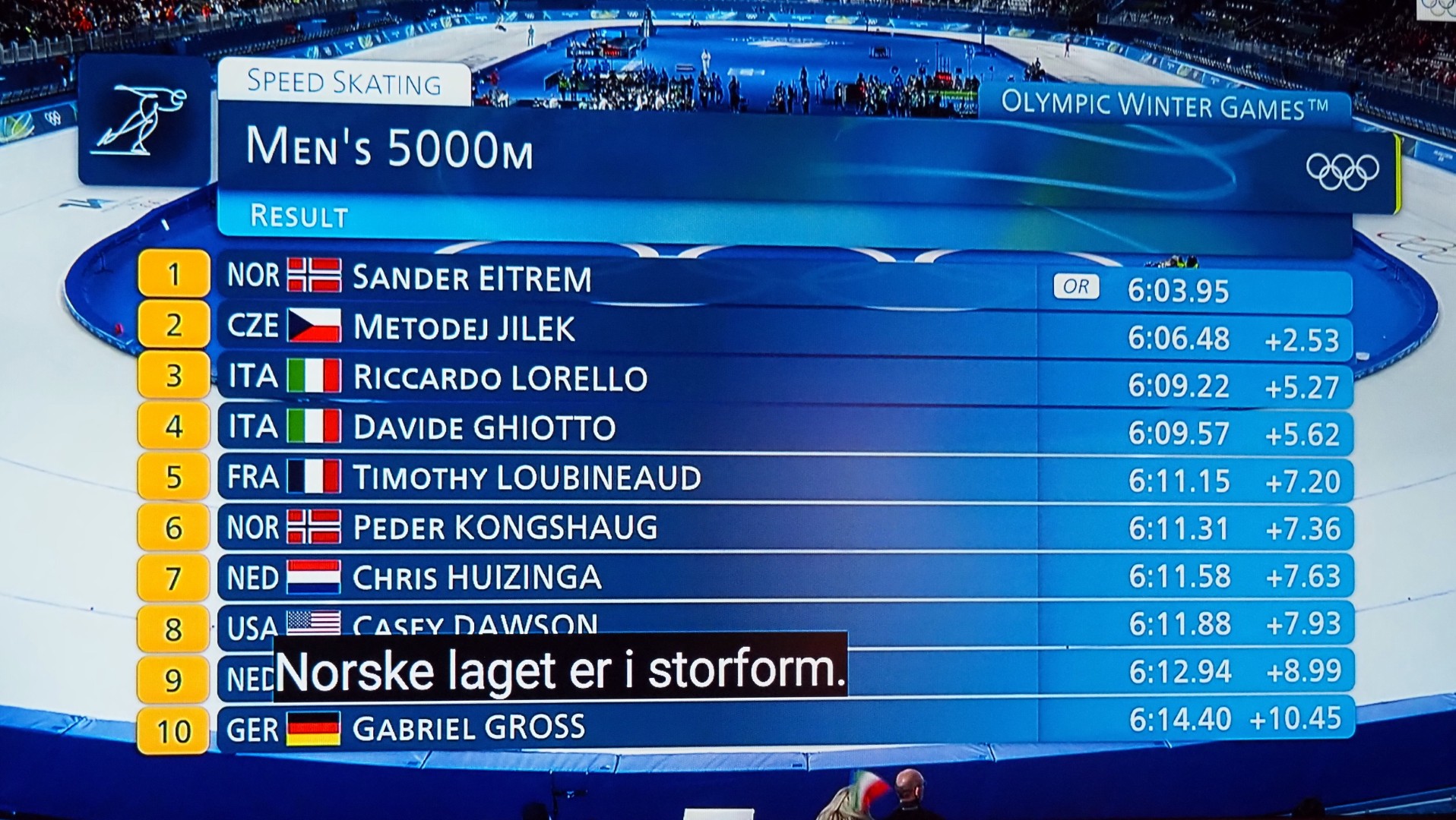 Men det er fortsatt to som går på skøyter, sååååå spennende. Eitrem is bloednerveus als de laatste twee schaatsen!