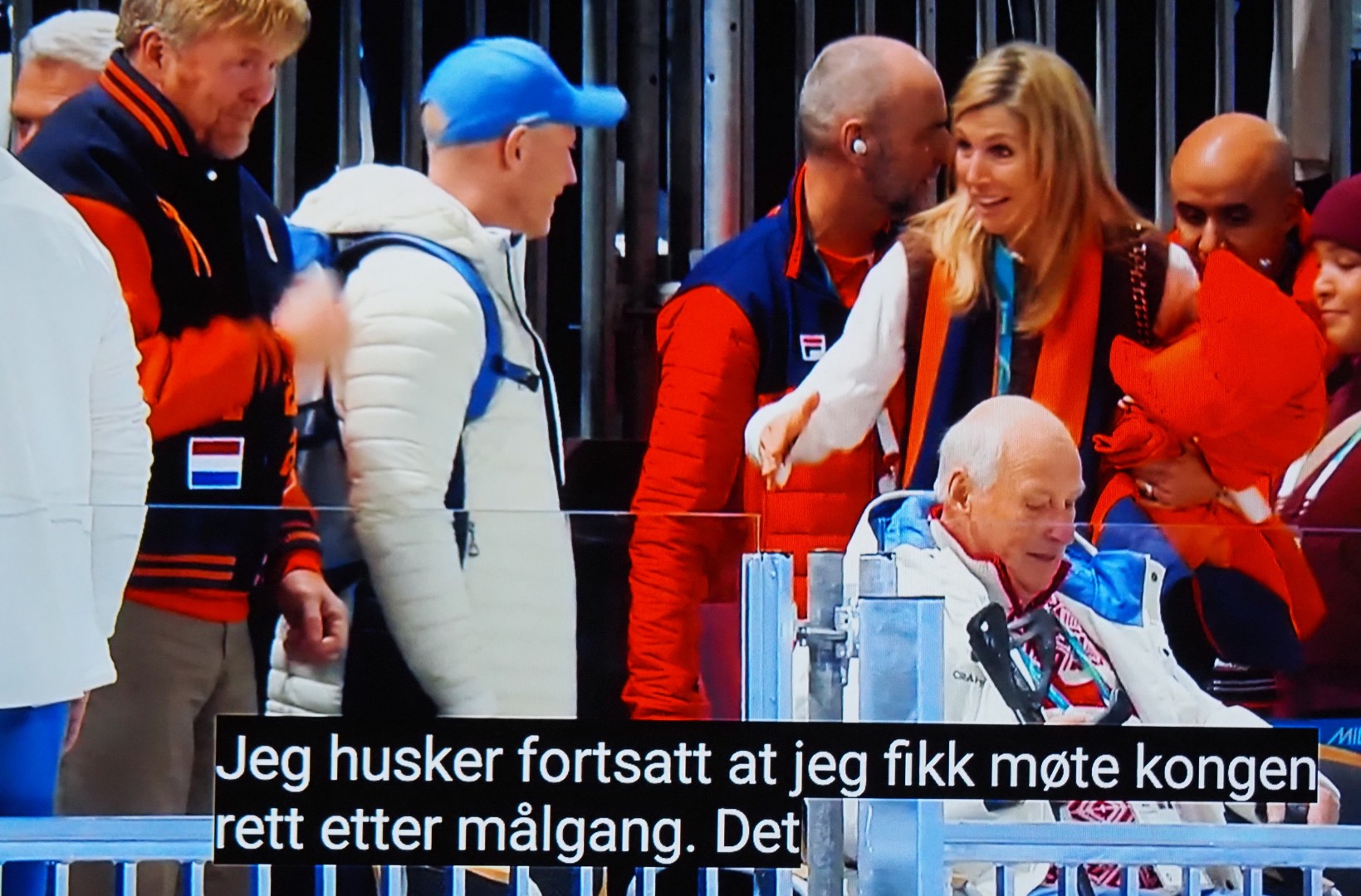 Nadat Sander Eitrem goyud wint op de 5000m schaats en een nieuw record vestigt, feliciteert koninging Maxima Noorse koning Harald! Ik heb mikjn zus nóg meer zakdoekjes gestuurd! 😉