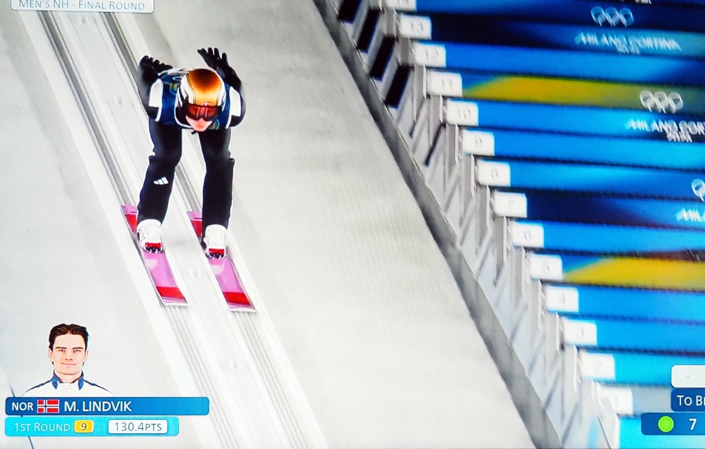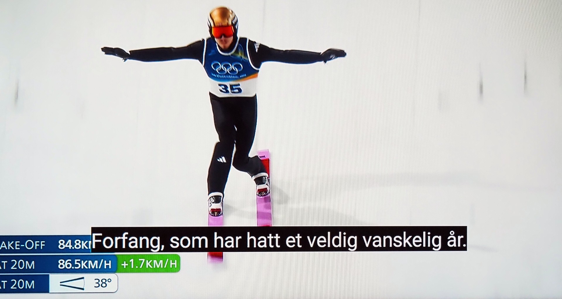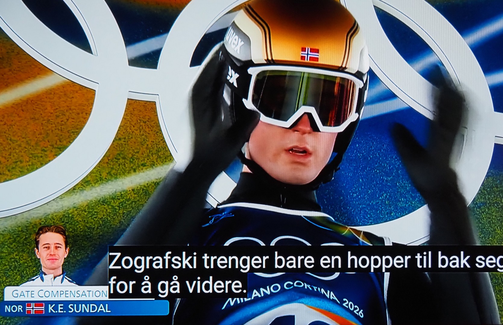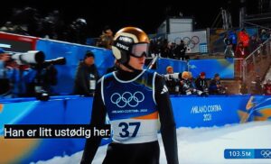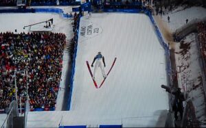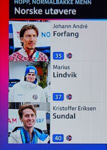 Drie Noren nemen deel aan het skischansspringen met twee sprongen. Maar zij eindigen niet bij de eerste tien! Misschien zit het skipak-schandaal van 2025 hun nog in de benen? Ze moeten 2 x springen! Niet alleen de afstand telt, maar ook de landing in Telemark-houding, de stand van de skies tijdens de sprong (hopp), de totale afwerking telt mee in de totale puntentelling!