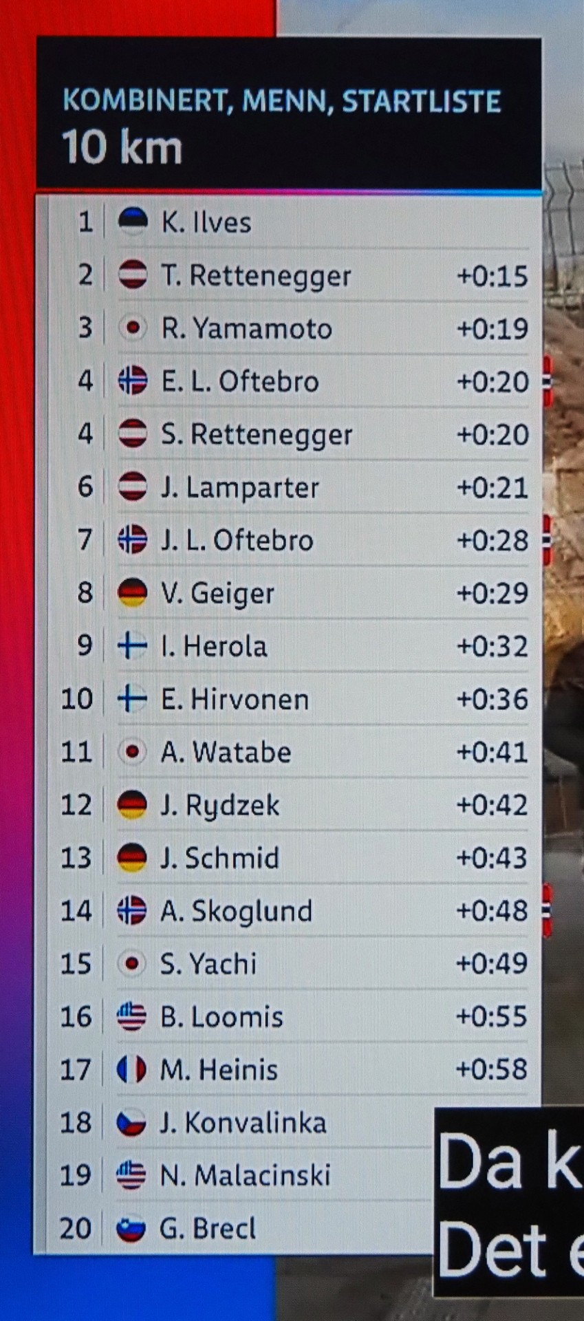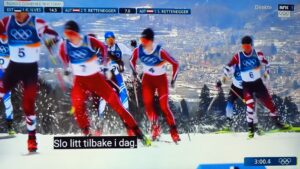 PS. Gecombineerde langrenn = de mannen ‘hoppen” eerst en degene die het verst skischans-springt, krijgt het hoogste startnummer 1. Op de vraag waarom Klæbo hier niet bij was, is dit het antwoord: Klæbo ‘hoppt’ niet! De hopp-wedstrijd laten men op de OL niet zien.