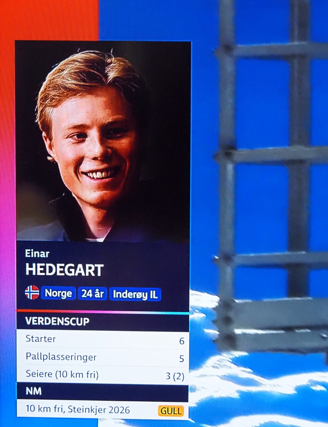 Fredag den 13. februar ser vi på langrenn, 10 km, menn, fri teknikk. Skal Einar Hedegart vinnen gull? Han er favoritt…