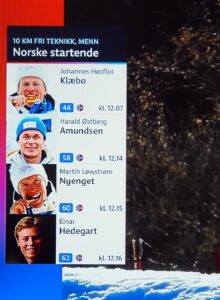 Vrijdag de 13e februari kijken we naar langlaufen, 10 km, mannen, vrije techniek. Gaat Einar Hedegart goud winnen? Hij is favoriet …