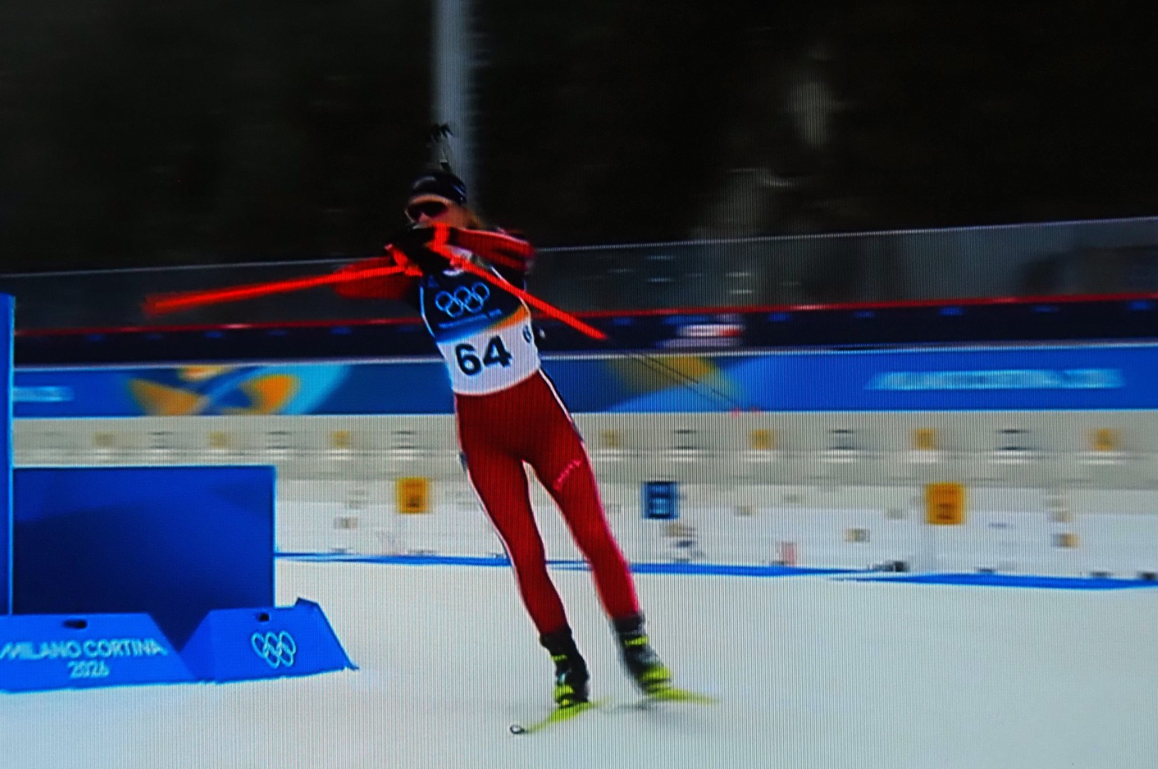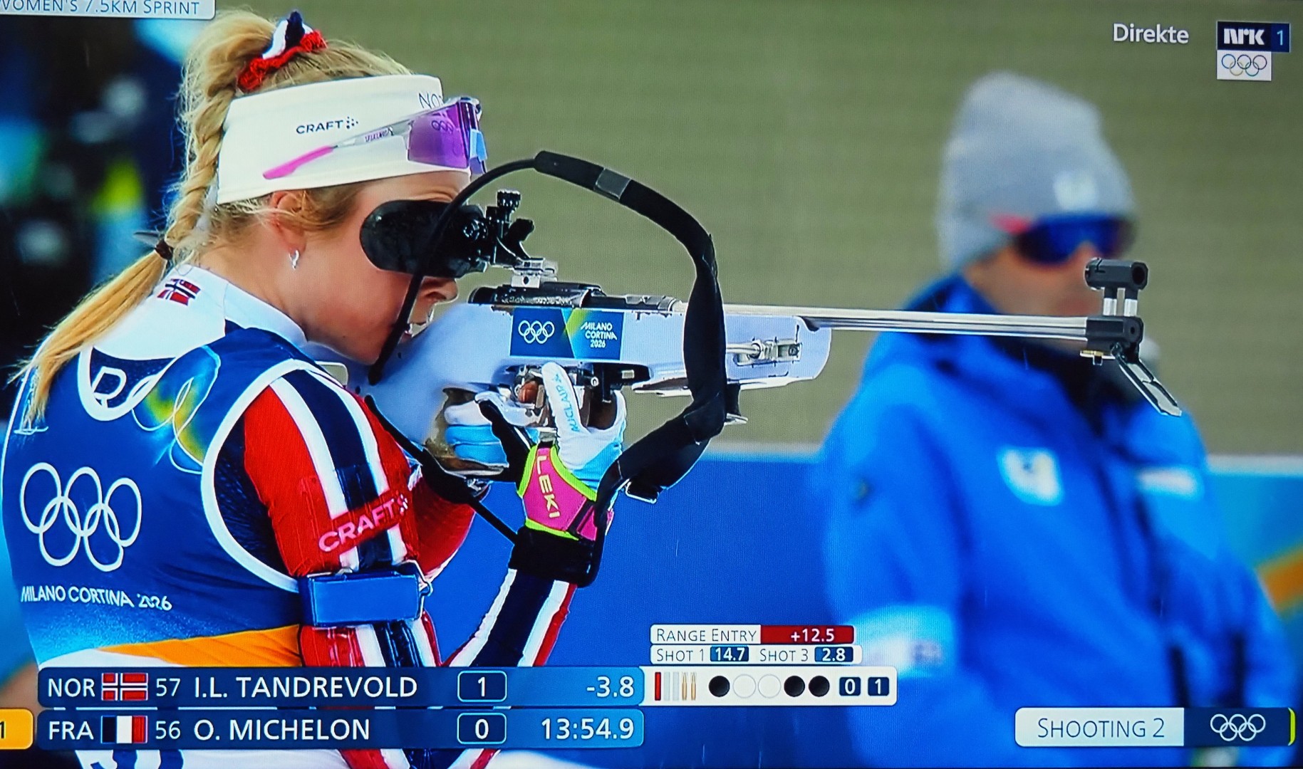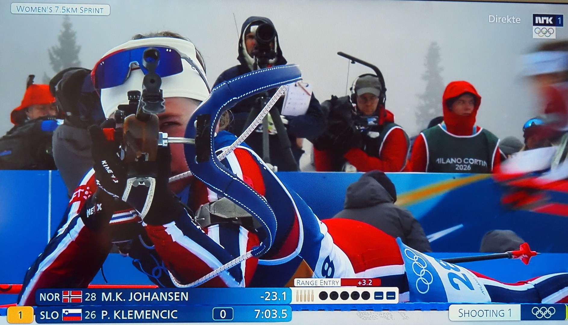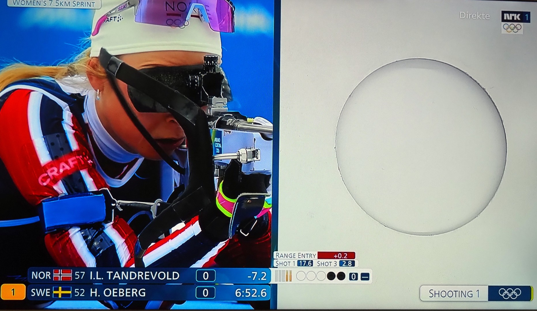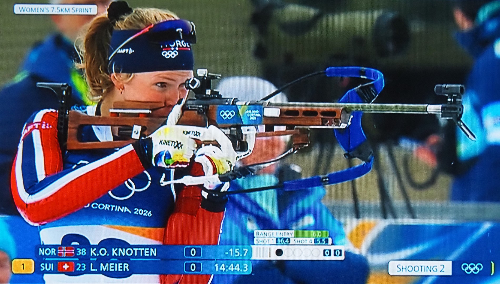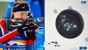Første skytingen nr. 64 Maren Kirkeeide. Eerst schot Maren Kirkeeide, nr. 64