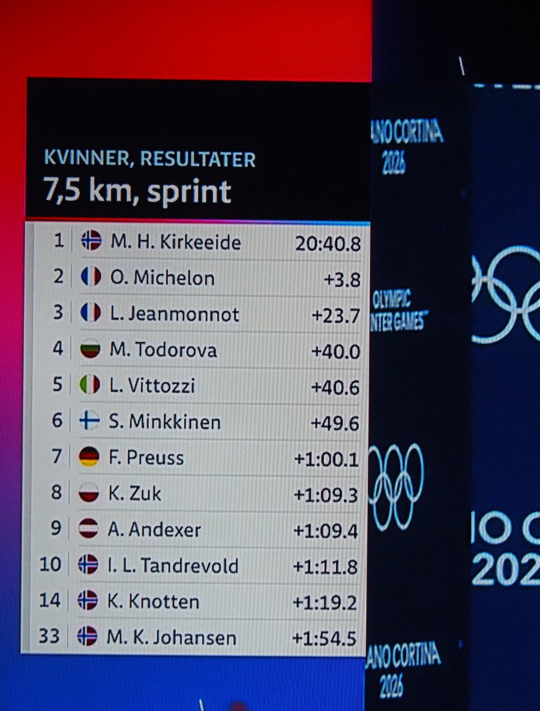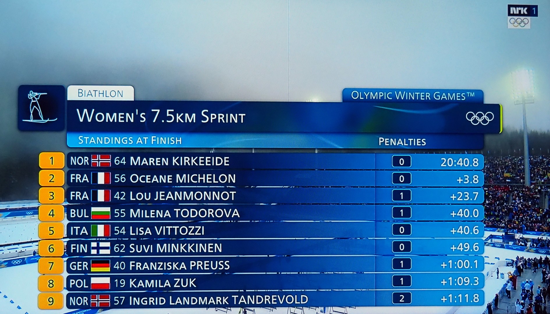 1. NO, 2. FRA, 3. FRA