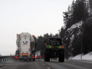 E6, hvor alt er mulig! De E6, waar je dus ook met een trekker op zondag rijdt…