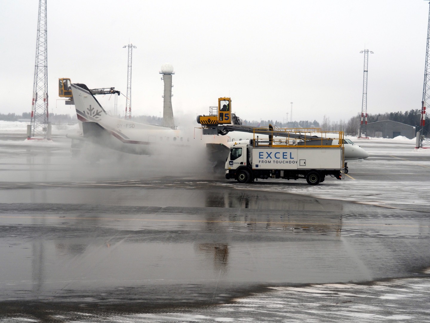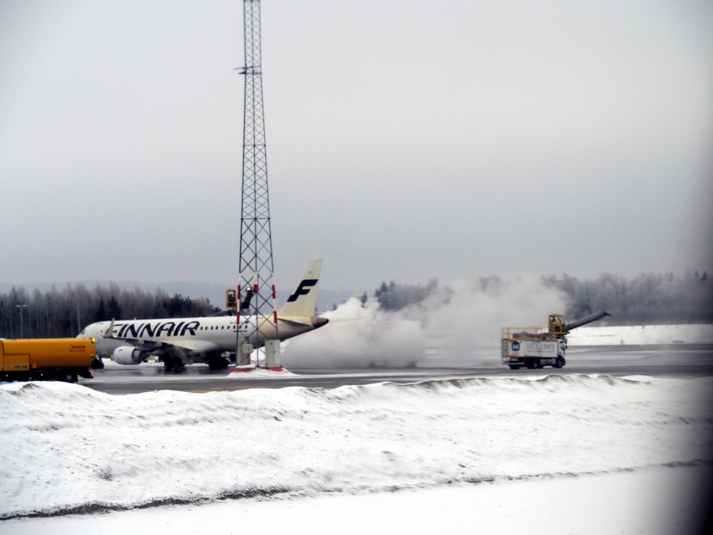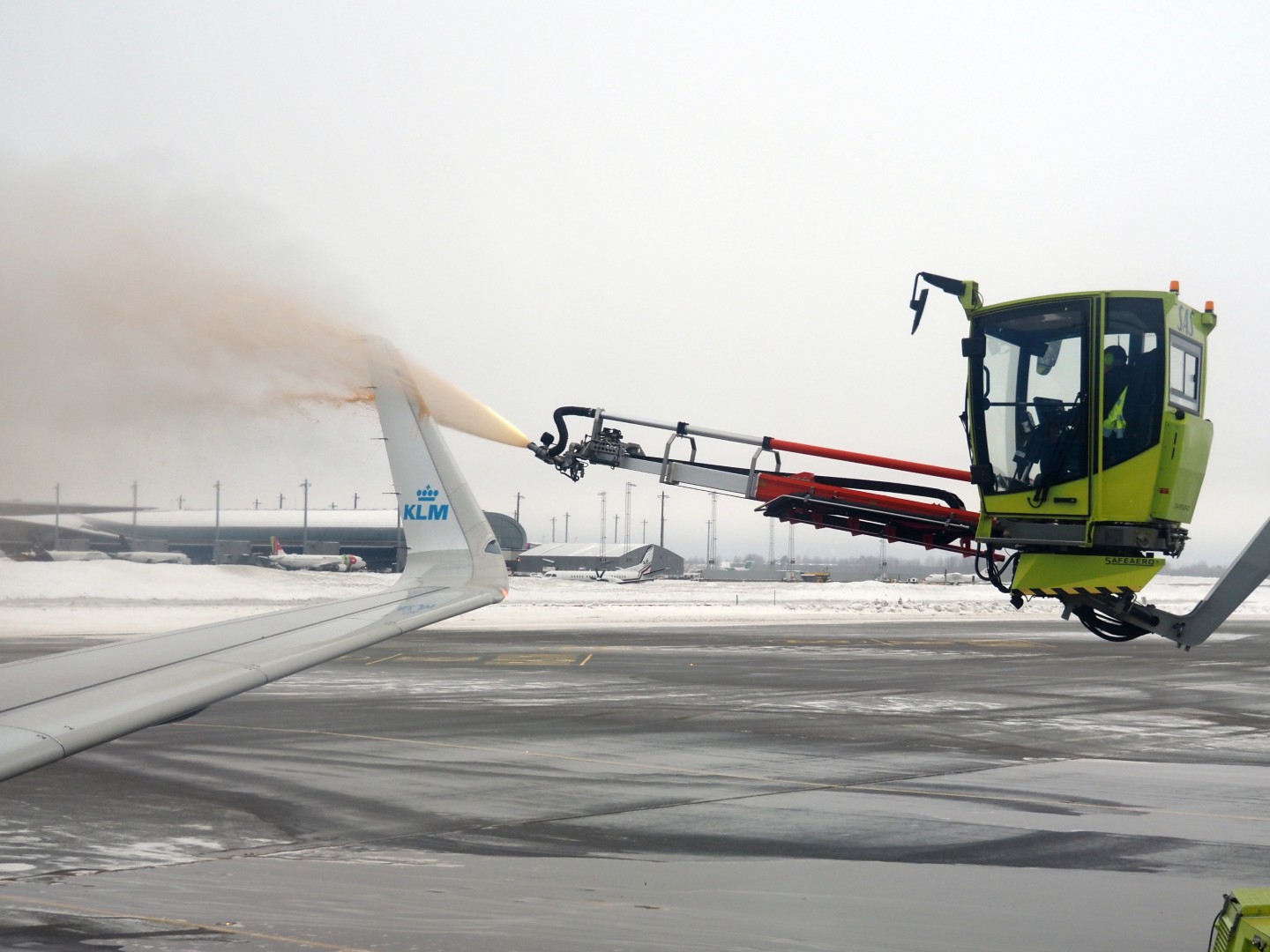 Flyet måtte gjennom avising! Het vliegtuig moest door de de-icing, alwaar chemicaliën over het vliegtuig worden gespoten om restanten ijs te verwijderen en om nieuwe aanwas te voorkomen