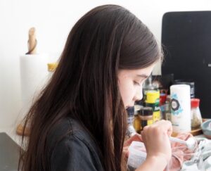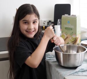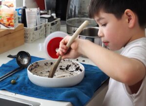 De kleinkinderen zijn druk in de keuken. Beter dan achter een scherm zitten!