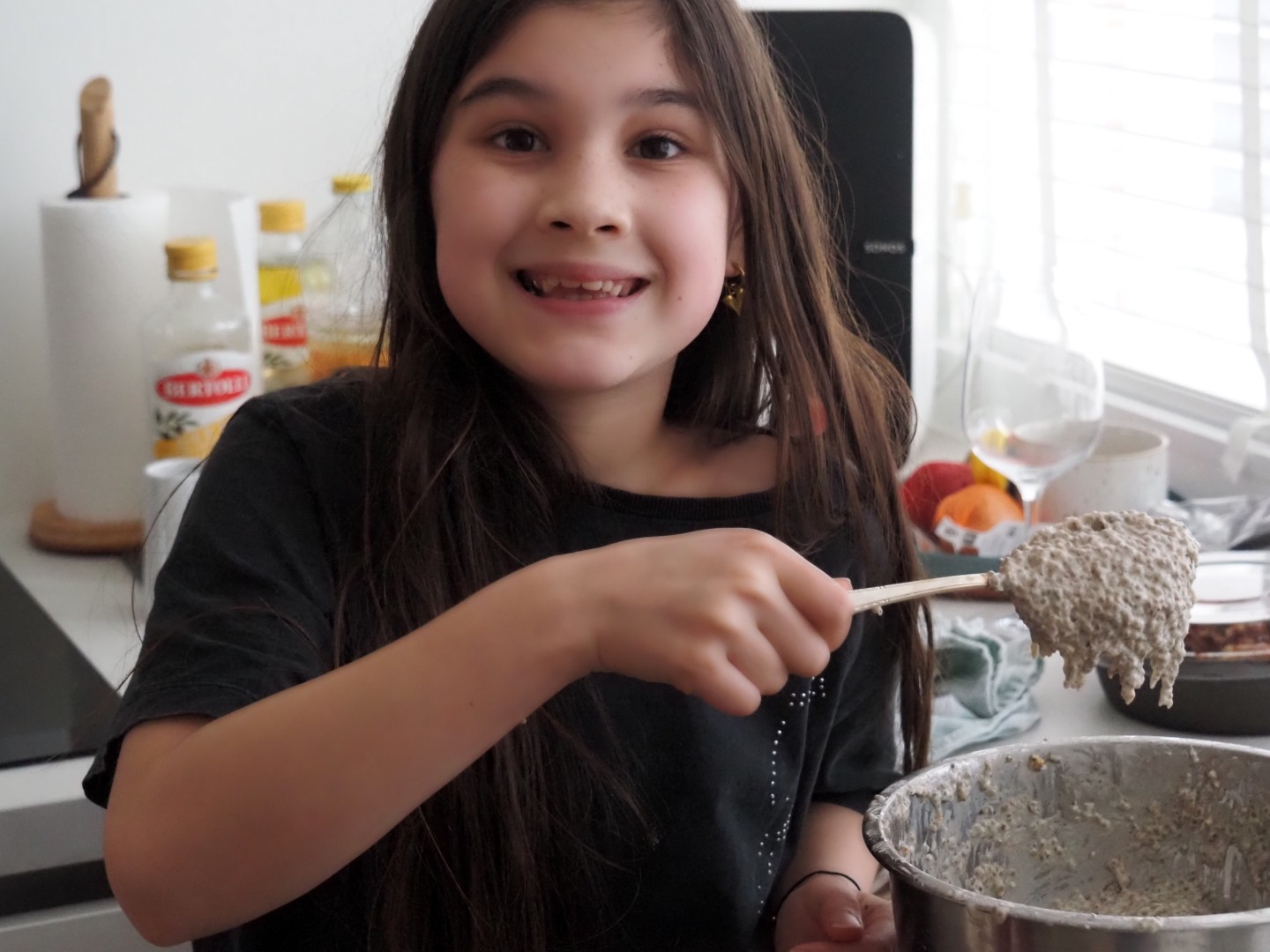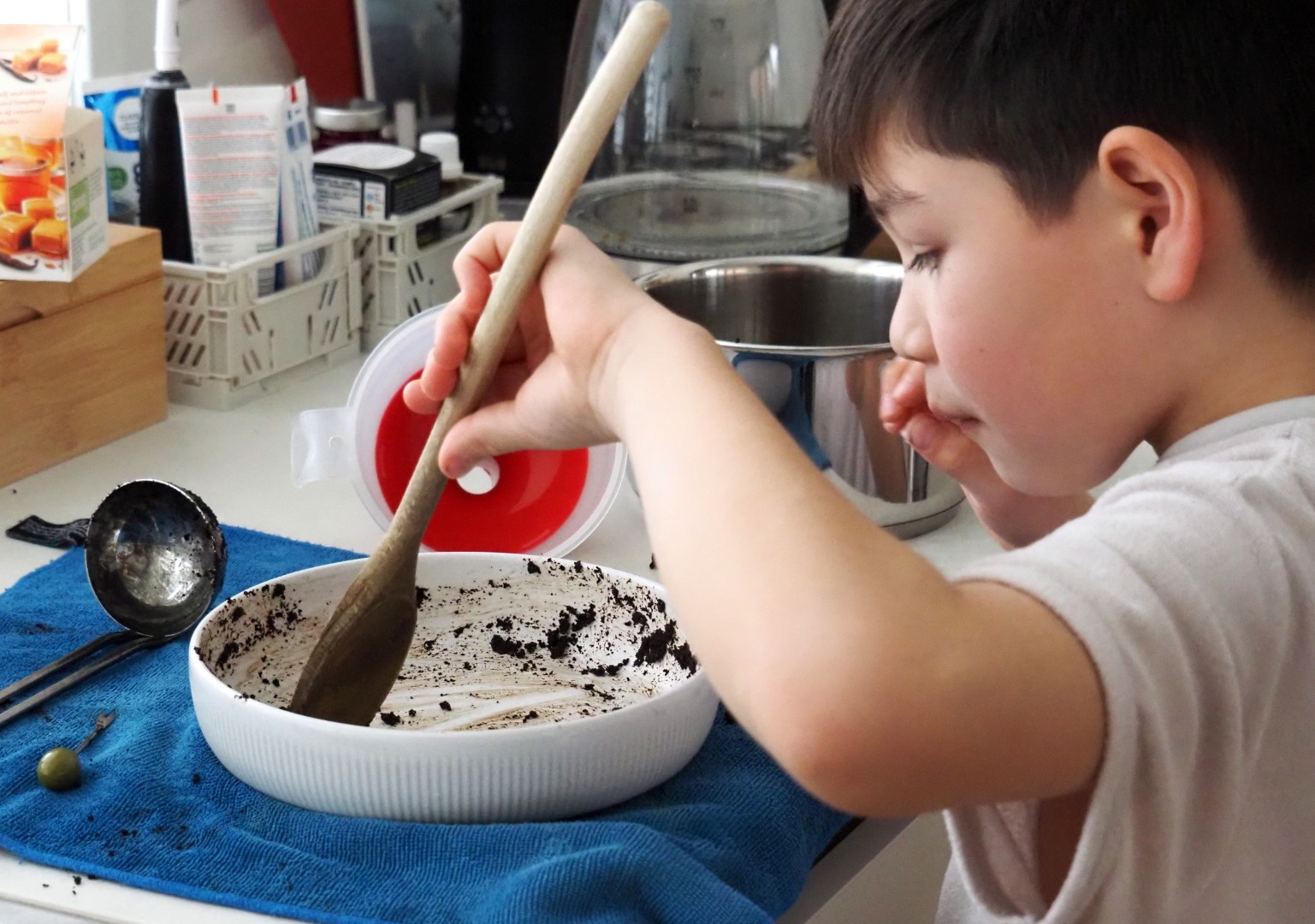 De kleinkinderen zijn druk in de keuken. Beter dan achter een scherm zitten!