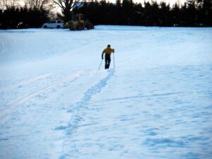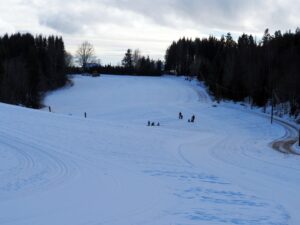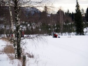 Mens vi drar på ski til Vassås, aker barn på Skalland, hvor Røde Kors snart kommer med sledene sine. Da er det enda mer moro!
