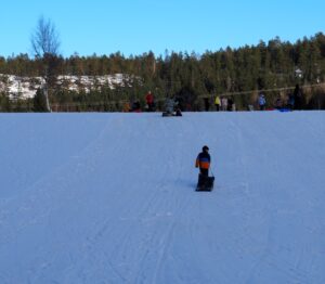 Terwijl te ski naar Vassås gaan, glijden kinderen te slee op Skalland naar beneden, waar het Rode Kruis straks komt om de pret te verhogen!