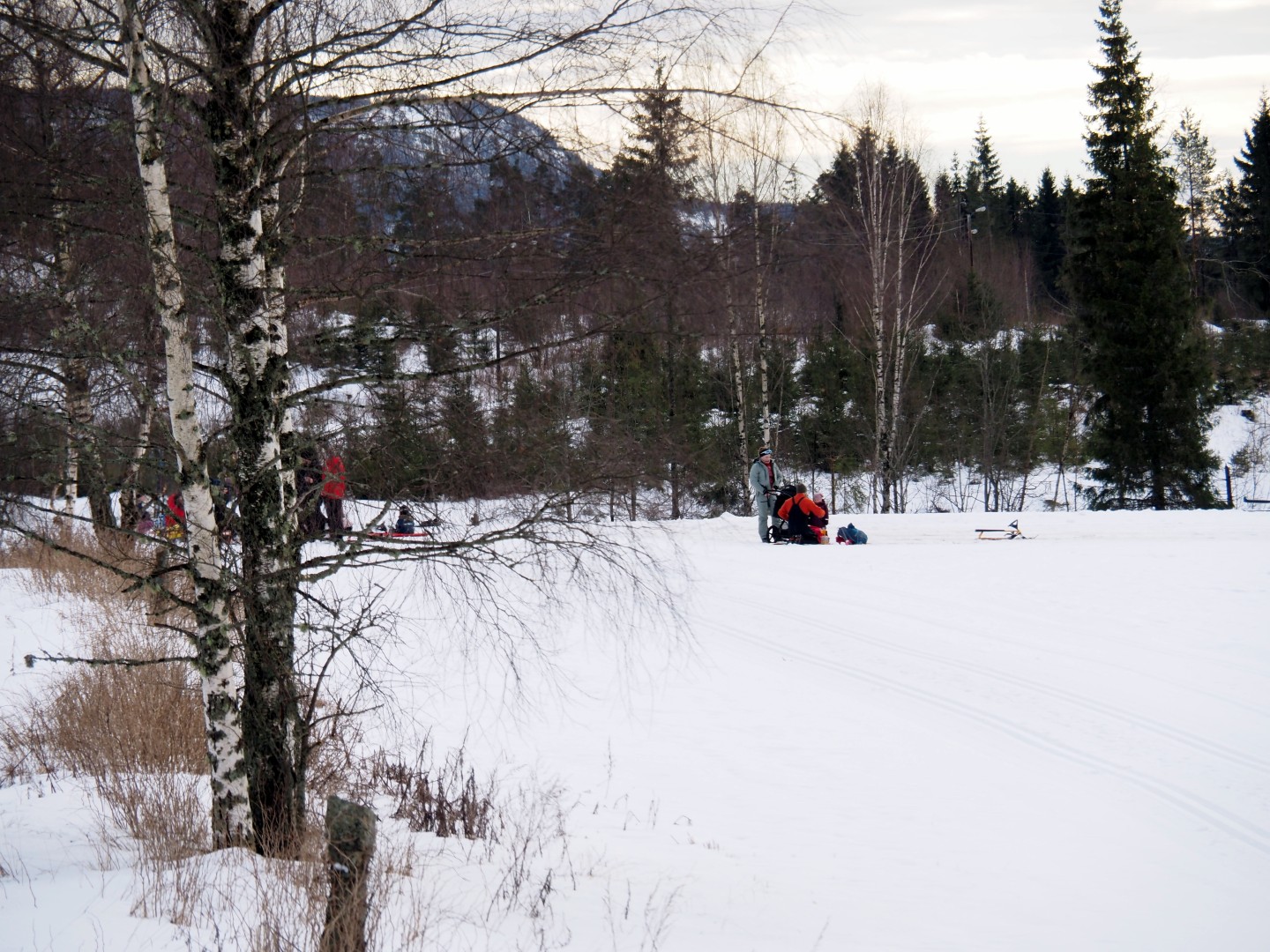 Terwijl te ski naar Vassås gaan, glijden kinderen te slee op Skalland naar beneden, waar het Rode Kruis straks komt om de pret te verhogen!
