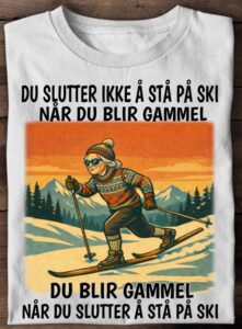 Du slutter ikke å GÅ på ski når du bli gammel, du blir gammel når du slutter å GÅ på ski. Niet stoppen te ski dus, want dan wordt je pas oud!
