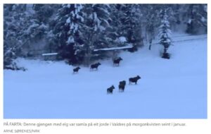 Jagers menen dat het elandenbestand dratisch afneemt door tekenbeten en teveel elanden op de vierkante km. Over overbejaging wordt met geen woord gerept. e afgelopen week zijn er ook verontrustende berichten verschenen over de jacht op lynxen, wilde rendieren bevers en wolven. De lynnx, wilde rendieren en bever staan n.b. op de rode lijst in Noorwegen!