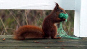 Het is niet alleen een zwarte kat die op eekhoorns jaagt, maar ook een grijze en licht bruine kat. Die katten hebben vast geen honger, maar volgen hun instinct. Kunnen die katten geen bel dragen, zodat ze beter hoorbaar zijn? Want de moeder van deze eekhoorns is al gedood door een kat. Zij liet vijf eekhoorntjes achter. Een jonkie ging alsnog dood, de andere vier hebben wij gevoed en in leven gehouden. Deze eekhoorntjes komen nog steeds dagelijks bij ons eten, maar zij missen een moeder die hun heeft leren verdedigen tegen katten. Redt de eekhoorntjes op Mariås en geef de kat een bel!