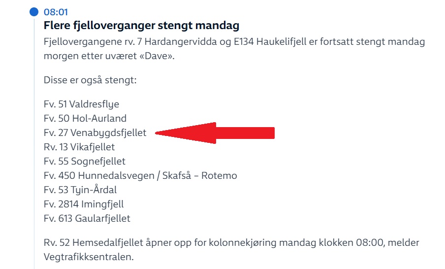 Venabygdsfjellet er 2. påskedag stengt. Ny vurdering kl. 21:00. Venabygdsfjellet is nog gesloten. Vanavond om 21 uur wordt opnieuw besloten of de bomen open gaan