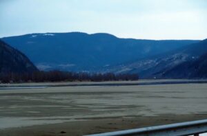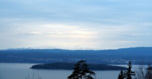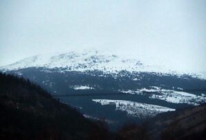 Snø på fjellet på den andre siden av Tyrifjorden. Sneeuw op de bergen aan de andere kant van Tyrifjorden