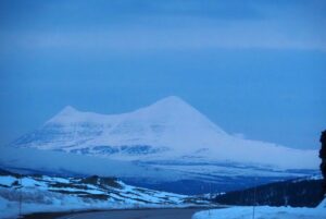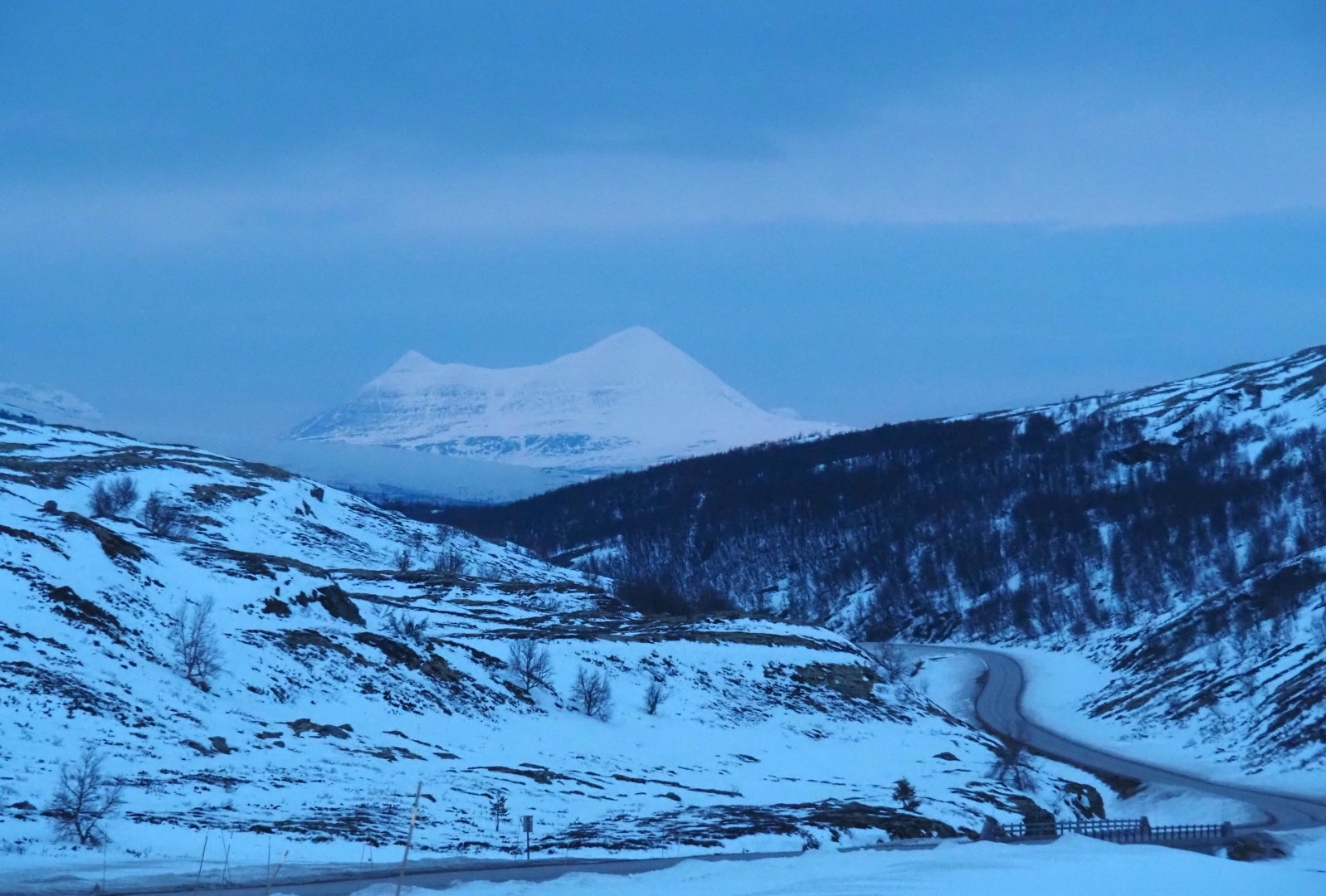 Veldig blå på Ringebusiden, sett over Venabygdsfjellet. Diep blauw richting Ringebu, gezien over Venabygdsfjellet